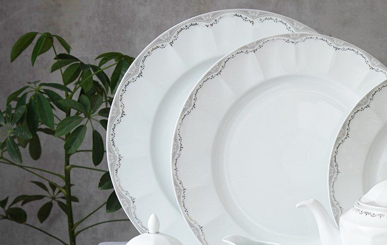 دیس: دو عدد با قطر + سانتی متر بشقاب غذا خوری: شش عدد با قطر 25، 27 یا 28 سانتی متر بشقاب خورش خوری: شش عدد با قطر 23 سانتی متر بشقاب میوه خوری: شش عدد با قطر 19 سانتی متر سالاد خوری بزرگ: یک عدد با قطر 25 سانتی متر سالاد خوری کوچک: شش عدد با قطر 15 سانتی متر نمک پاش: یک عدد با گنجایش 64 سی سی فلفل پاش: یک عدد با گنجایش 64 سی سی