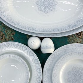 دیس: دو عدد بشقاب غذا خوری: شش عدد با قطر 25 سانتیمتر بشقاب خورش خوری: شش عدد با قطر 23 سانتیمتر بشقاب میوه خوری: شش عدد با قطر 19 سانتیمتر سالاد خوری کوچک: شش عدد با قطر 14 سانتیمتر نمک پاش: یک عدد با گنجایش 58 سی سی فلفل پاش: یک عدد با گنجایش 58 سی سی