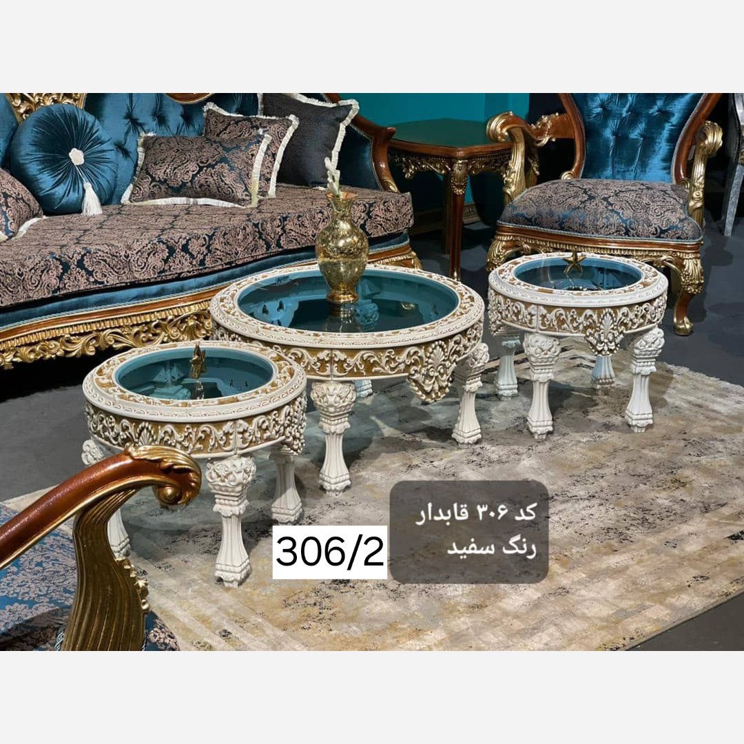 💥عسلی سلطنتی قابدار گرد ♨️ ✅️شامل یک میز بزرگ با دو عدد عسلی 🔰 مدل 306 🔰ابعاد میز بزرگ 80 در 80 🔰ابعاد عسلی 48 در 48 🔰ارتفاع میز و عسلی ها: 45 🔰 جنس:صفحه ام دی اف و پایه پلیمر ◀️خرید مسقیم و بی واسطه ◀️ قابل سفارش در رنگ های طلایی، سفید، سفید استخوانی، نقره ای، بژطلایی، فندوقی و ... . 🚛 ارسال کشوری با باربری