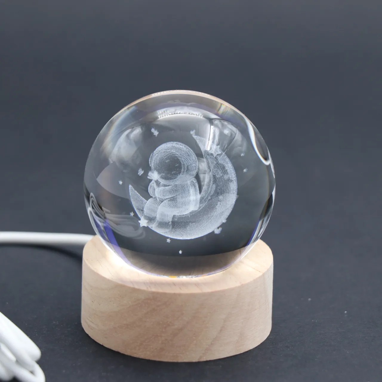 گوی چراغ خواب فضانورد کفی چوبی دارای 6 LED با نور دهی خوب دارای کابل متصل USB ، قطر گوی 5 سانت