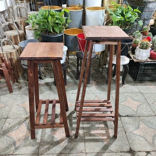 پایه گلدان چوبی مربعی قهوه ای - استند گلدان چوبی مربعی قهوه ای - چهار پایه چوبی - چهار پایه قهوه ای صفحه مربعی مبلمونسرا مدل 238967