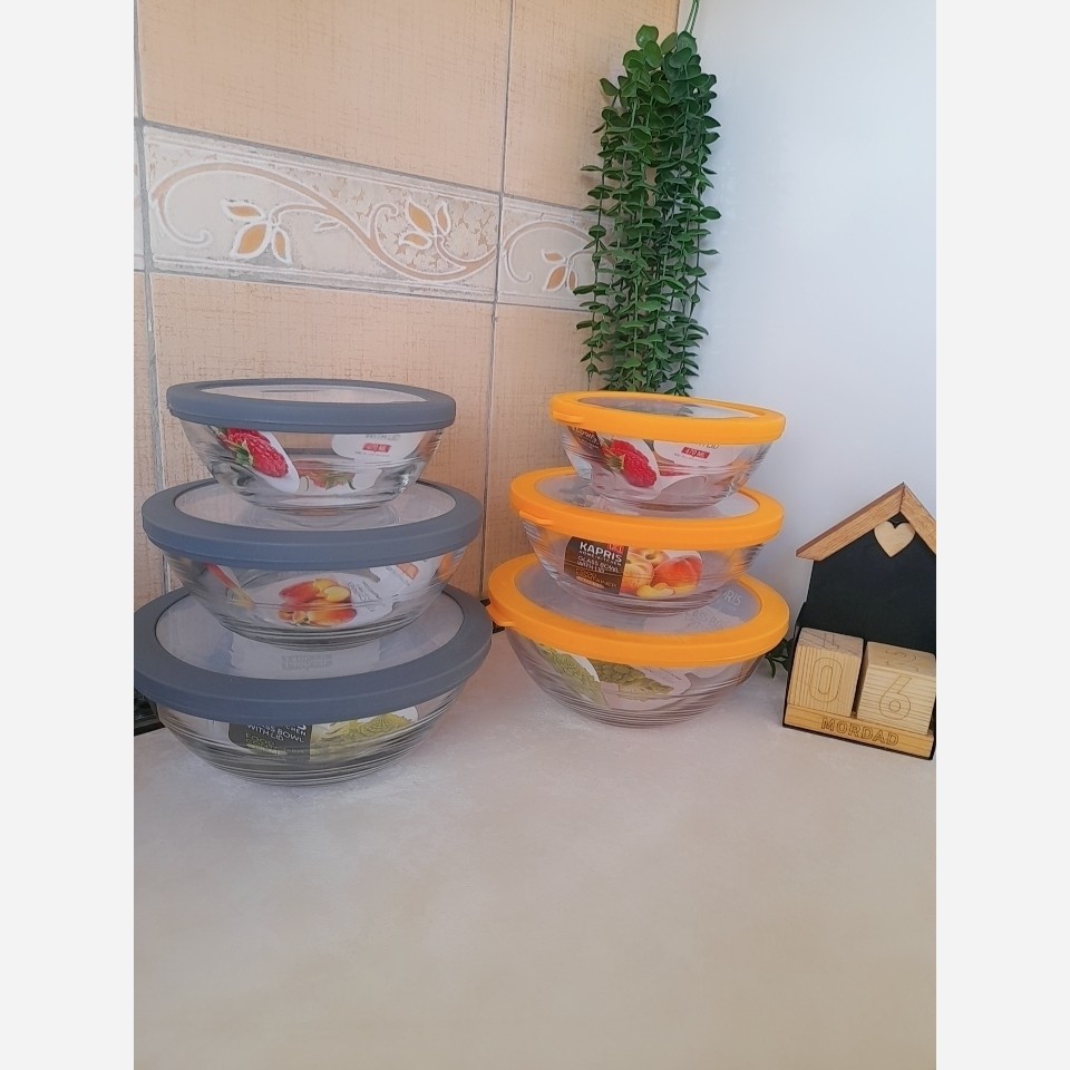 ظروف سه تیکه پیرکس قابل استفاده درماکروفر فر درب محکم قیمت مناسب درسه رنگ طوسی قرمز نارنجی