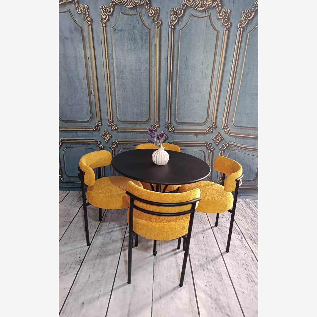 مشخصات محصول : پارچه دیاموند خارجی اسفنج مبلی و فوم سرد اسکلت پروفیل گوشت 2 ابکاری فورتیک با ضمانت 18 ماهه ست 4 نفره با میز قطر 85