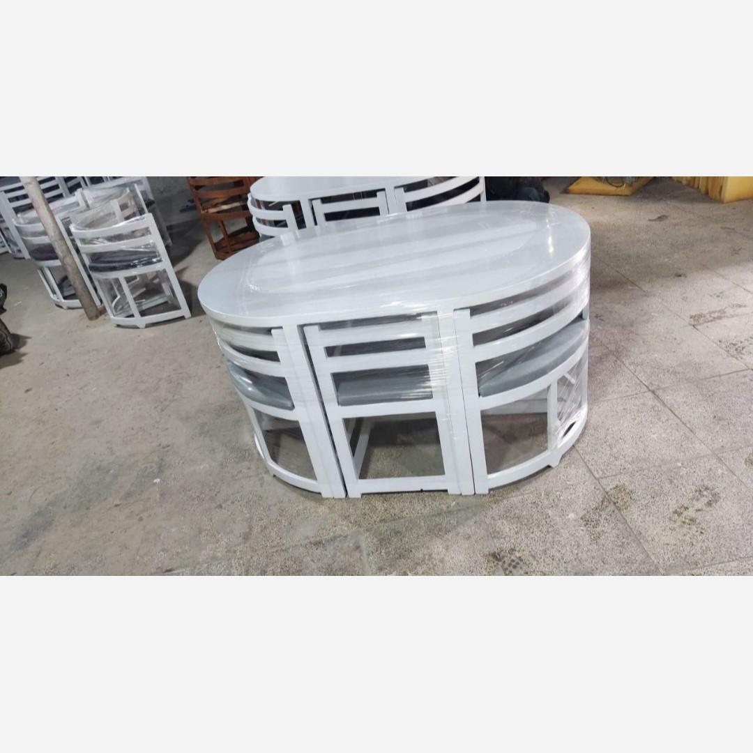 🔰ناهارخوری کم جا بیضی ✅️جنس صندلی ها: چوب روسی ✅️جنس میز: صفحه ام دی اف، پایه ها چوب روسی ✅️پارچه: قابل سفارش به سلیقه ✅️رنگ چوب: رنگ پلی استر، انتخابی ✅️ابعاد میز: 🔶️ 4نفره: 90در 90 🔶️ 6نفره: 90 در 140 🚚ارسال به سراسر ایران 🇮🇷 ✅️تحویل: 10 روزه 🔴نحوه ثبت سفارش: 1️⃣1-گفتگو در چت و دریافت مشاوره و راهنمایی، 2️⃣2-افزودن به سبد خرید و پرداخت مبلغ 3️⃣3-گفتگو با پشتیبانی جهت رنگ پارچه و چوب 4️⃣4-آماده سازی و ارسال سفارش ✅️ ارسال به تهران: از طریق وانت در همان روز آماده شدن ✅️ ارسال به شهرستان: تحویل به باربری و تحویل بین 24 تا 72 ساعت بعد .