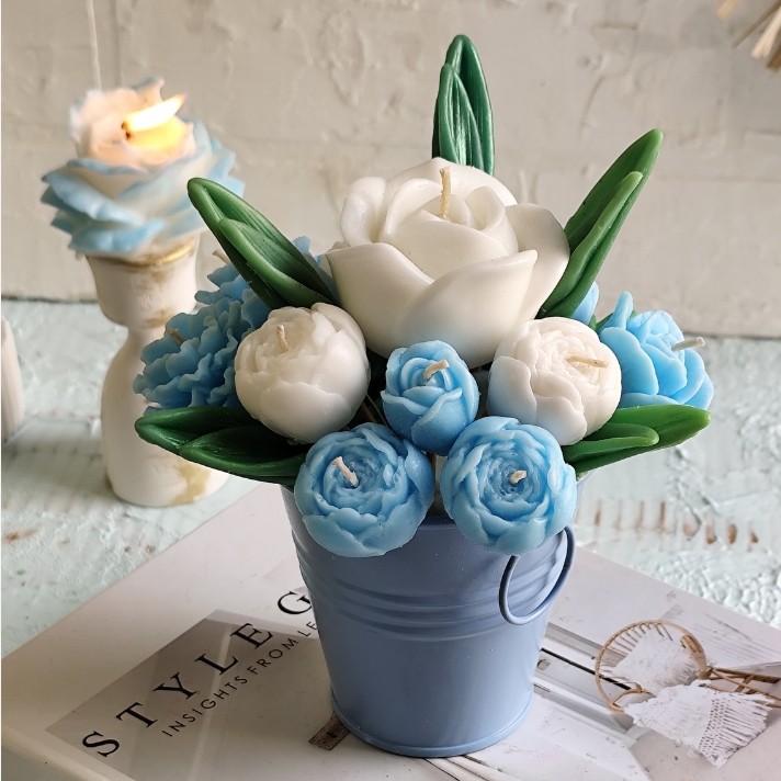 شمع دست ساز سطل فلزی گل شمعی با تنوع رنگی بسیار بالا