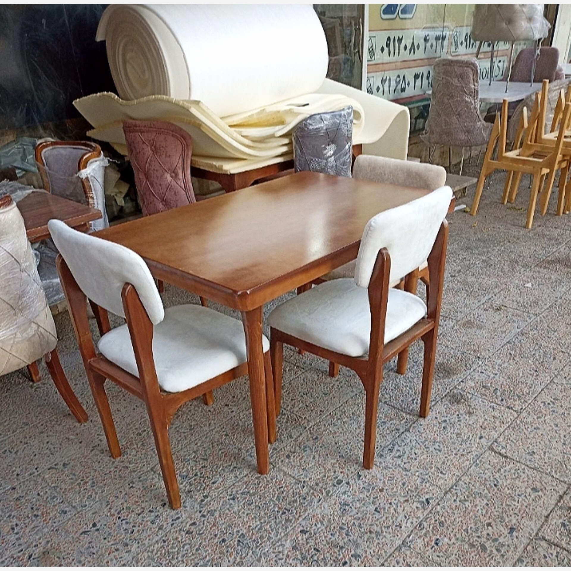 میز و صندلی ناهارخوری 4 نفره جنس چوب روس ابعاد 80×120×80 34×34×50 صفحه میز قابل جدا شدن دارای رنگبندی در چوب و پارچه امکان انتخاب صفحه مربع 90×90