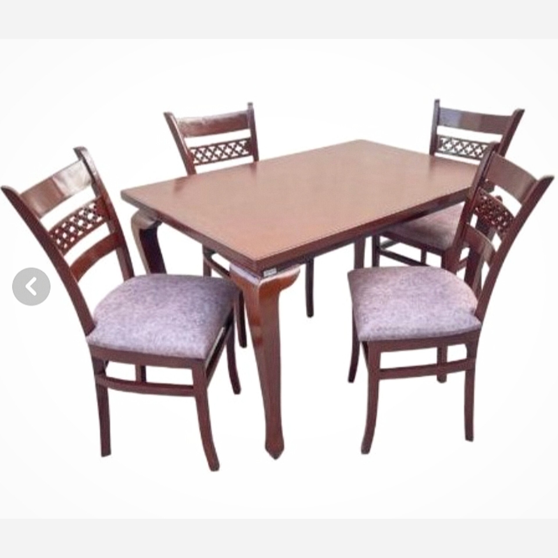 میز و صندلی ناهارخوری 4 نفره مدل خشتی 120×80×80 34×34×50 جنس چوب روس کف اسفنج دارای رنگبندی در چوب و پارچه