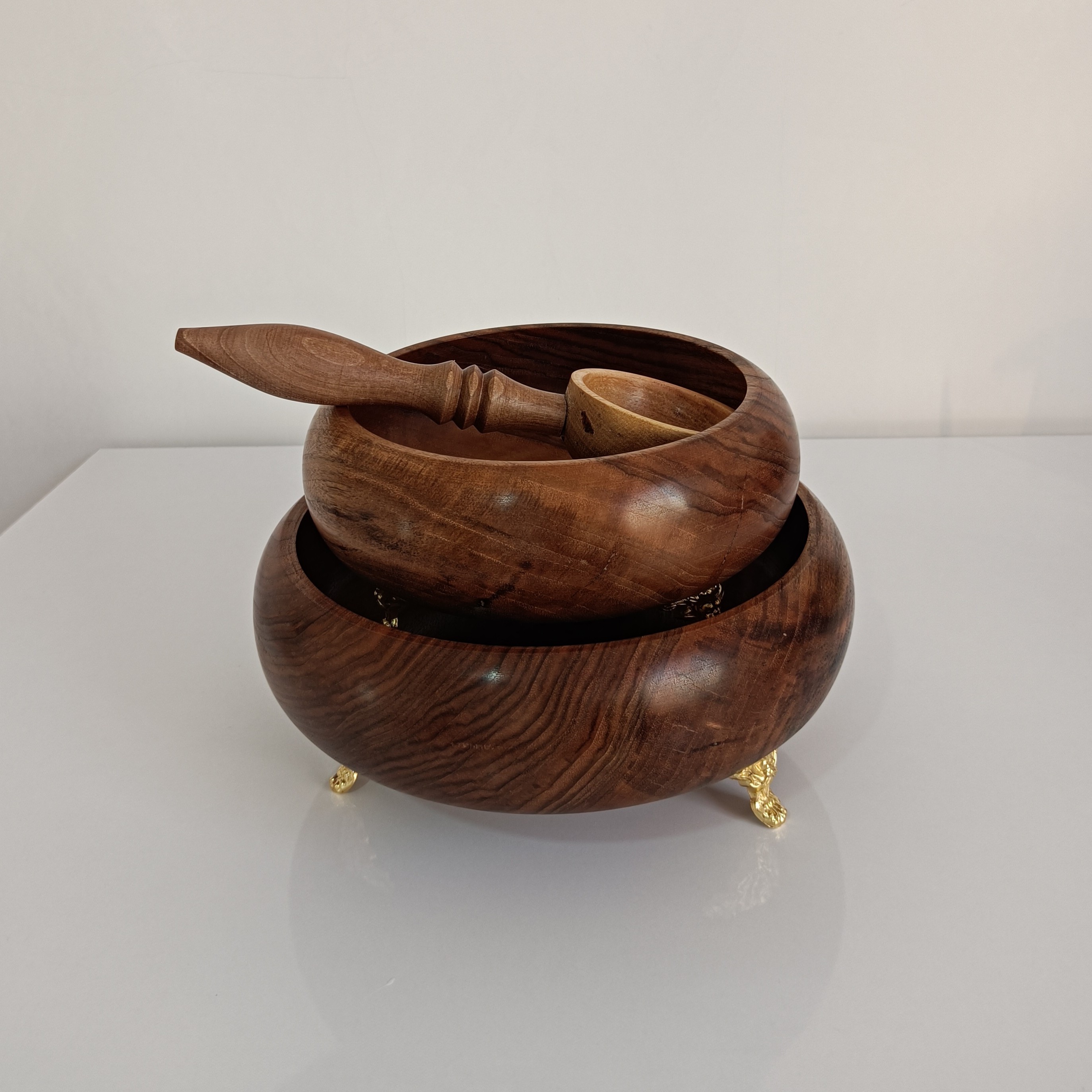 ست آجیل خوری و میوه خوری چوبی جنس : چوب گردو مرغوب پوشش : روغن گیاهی قطر میوه خوری : 25 سانتی متر قطر آجیل خوری : 20 سانتی متر سفارش به صورت ست و عمده