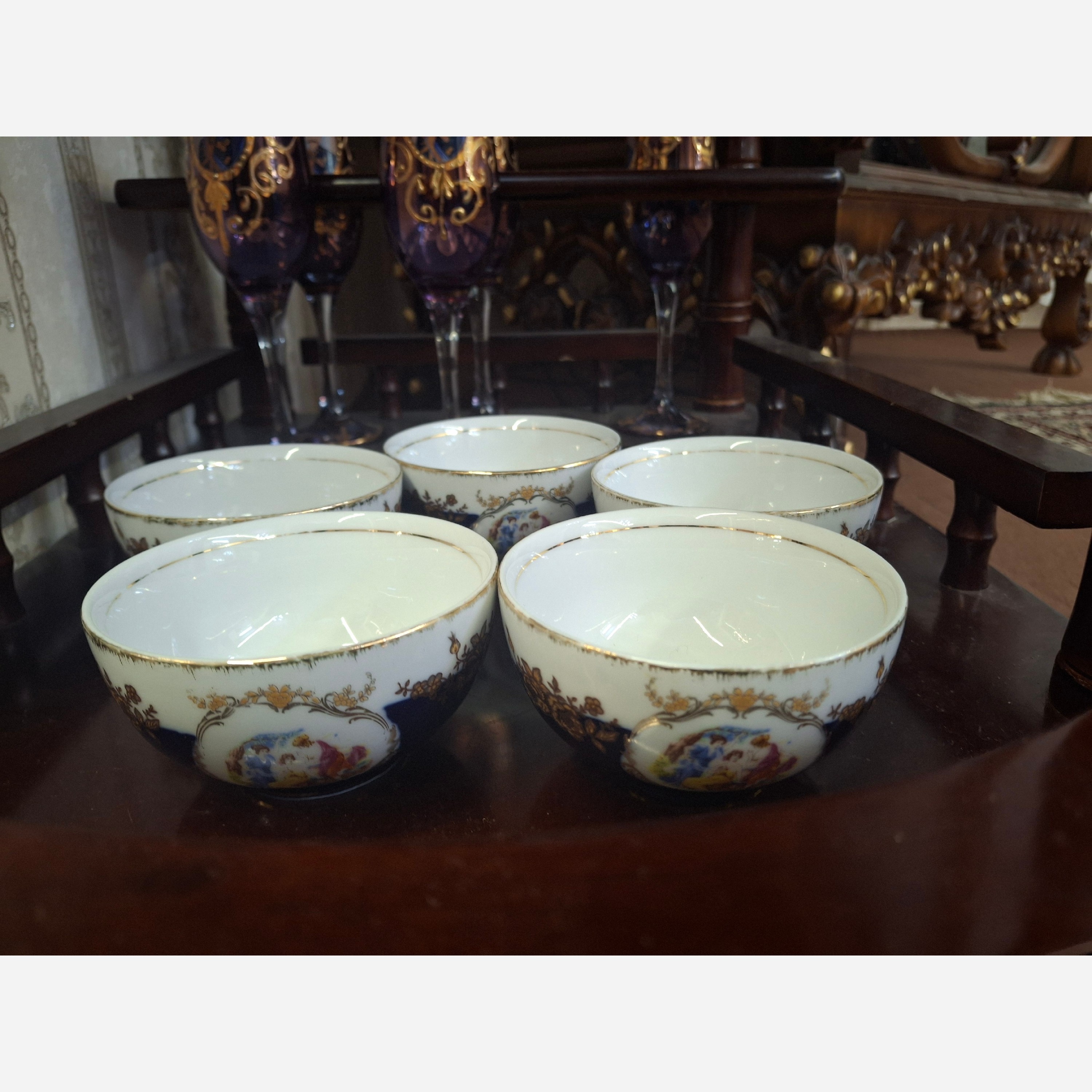 پیاله چینی سرمه ای 3 دختر اصل چک 5 عددی نسبتا قدیمی خاص و کمیاب بسیار زیبا با قیمت بسیار مناسب و ارسال رایگان