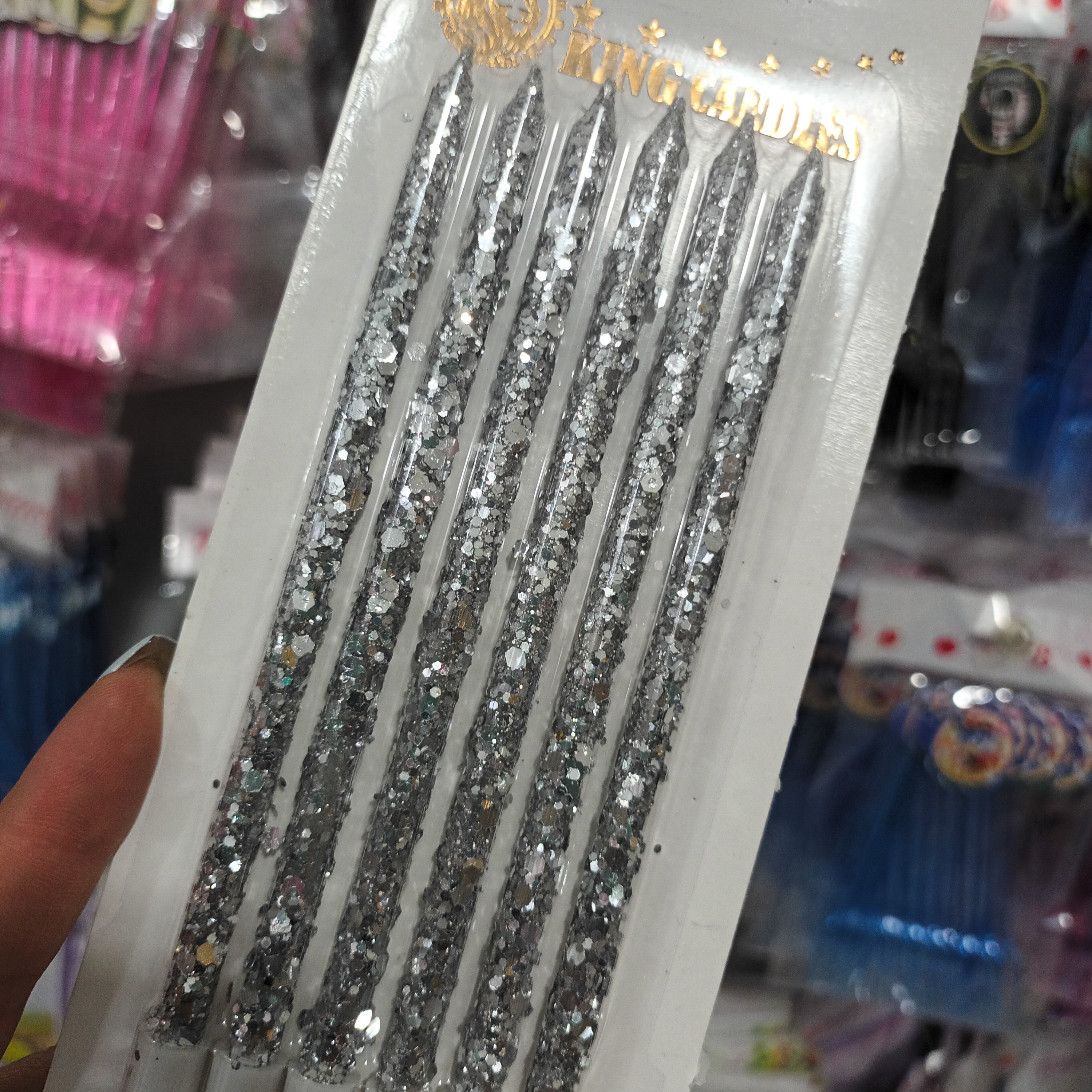 شمع اکلیلی پولکی نقره ای ارتفاع 12 سانت بدون پایه بسته 6 تایی