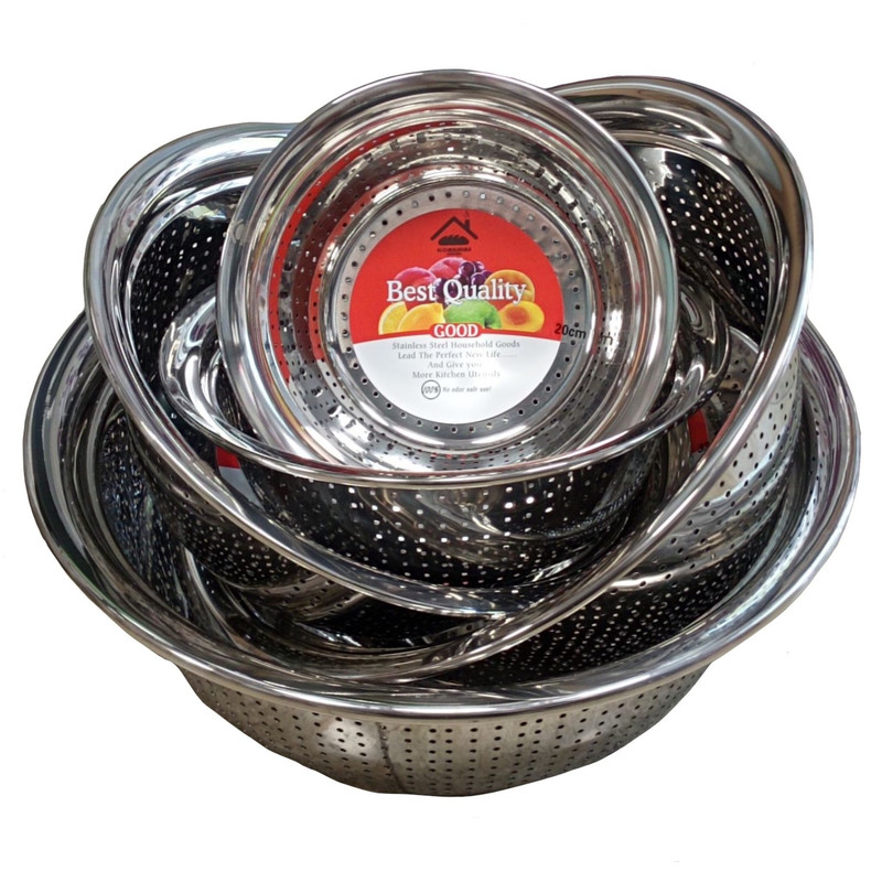 این پک شامل 5 عدد آبکش از سایز 20 تا 36 بوده است. دارای جنس استیل ضدزنگ میباشد. که بسیار براق و درخشان است و با گذشت زمان و استفاده مکرر همچنان براقی خود را حفظ میکند. بدنه آن محکم بوده و وزنی بسیار سبک دارند. در برابر زنگ ضدگی و فرسودگی بسیار مقاوم است و میتوانید برای مدت طولانی از آن استفاده کنید. دیگر نیازی به خرید آبکش دیگر و صرف هزینه اضافی ندارید.ضد خش و مقاوم در برابر زنگزدگی مناسب برای شستوشو در ماشین ظرفشویی است. سطح براق و صیقلی برای شستشوی راحت تر بسیار مناسب است.