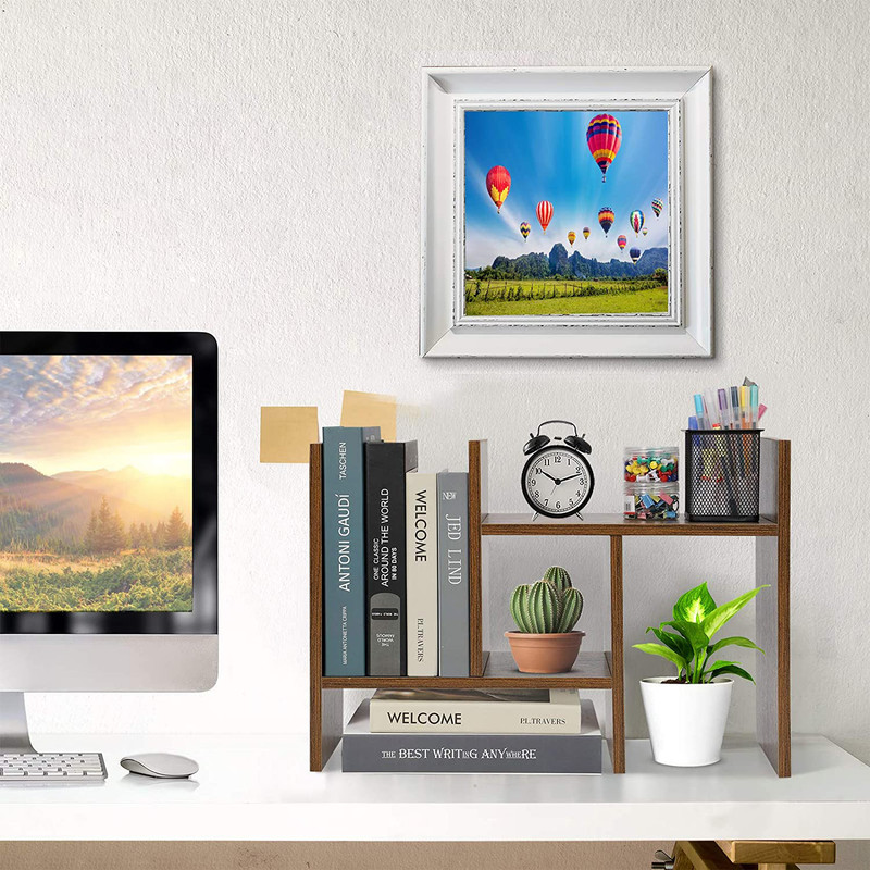 میز افراد پرکار همیشه با مشکل در هم ریختگی روبرو میشود چاره کار فضاسازی روی سطح میز است . با انتخاب این کتابخانه رومیزی خلاقانه و کم حجم میتوان کتابها / جامدادی /قاب عکس / دکوری ها و موبایل و ... را از روی میز به این فضا انتقال داد . حتی از این شلف رومیزی برای آشپزخانه نیز میتوانید برای نظم دادن به کابینت خود استفاده کنید.