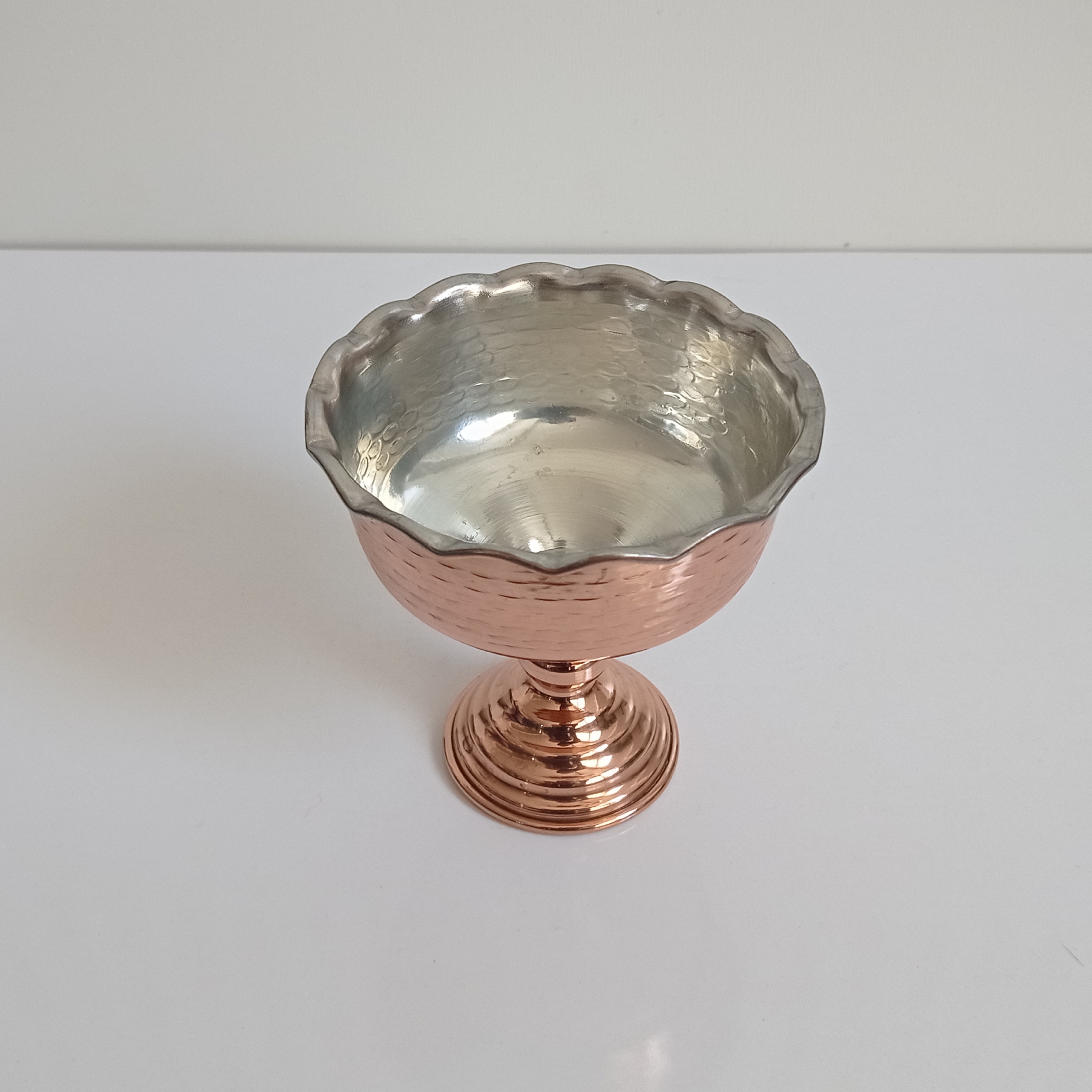 این ظرف مسی برای استفاده به عنوان تخمه خوری یا آجیل خوری و یا تنقلات دیگر مورد استفاده قرار می گیرد و بیرون مسی و داخل آن قلع شده است . ظرف نانو شده تا سیاه و کدر نشود و همیشه رنگ ثابت بمونه .کیفیت ساخت بالایی داره و طرح و چکش کاری خوبی روی کار انجام شده