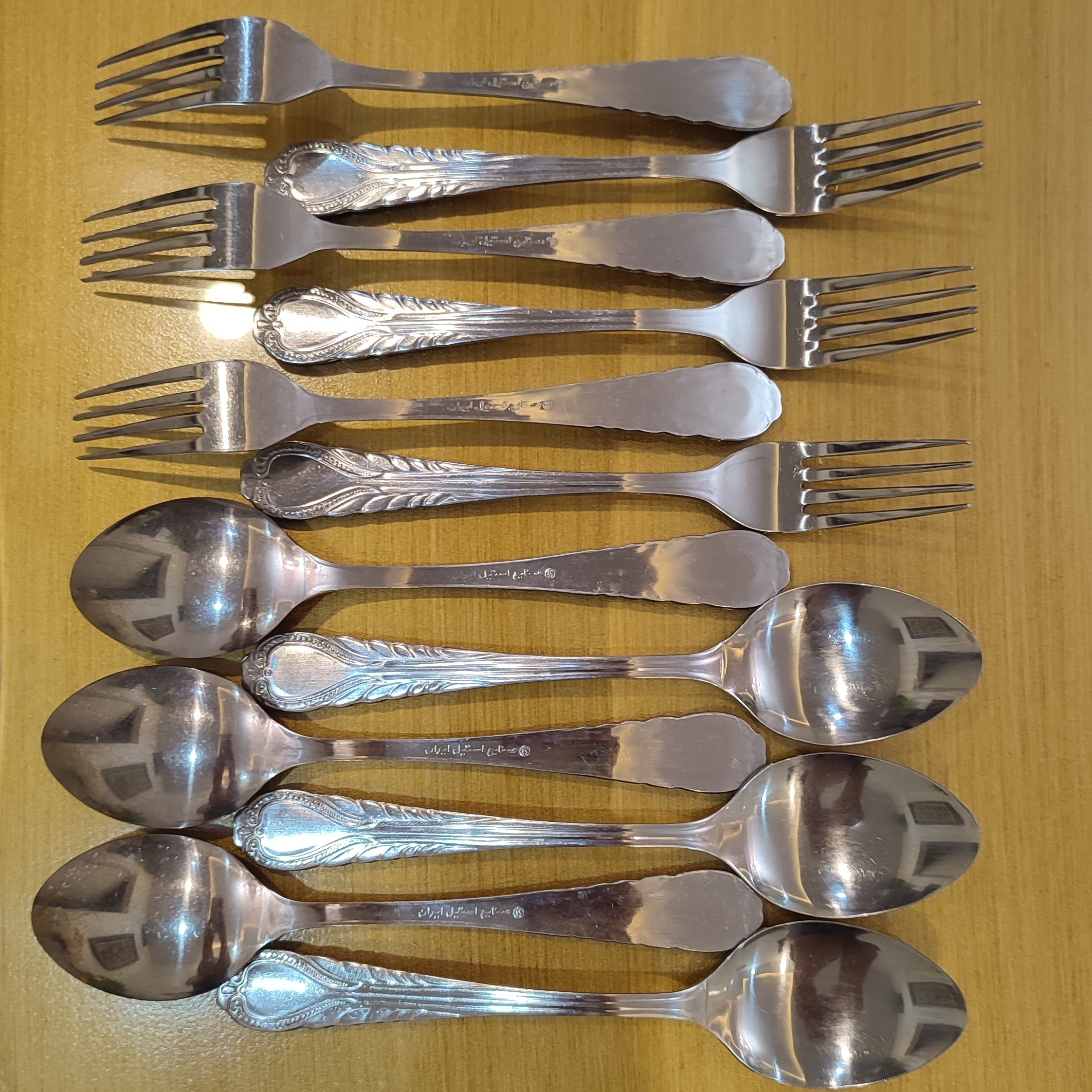 برند صنایع استیل ایران 6 عدد قاشق و 6 عدد چنگال قابل شستشو با دست و ماشین ظرفشویی به صورت فله هستن و جعبه ندارن