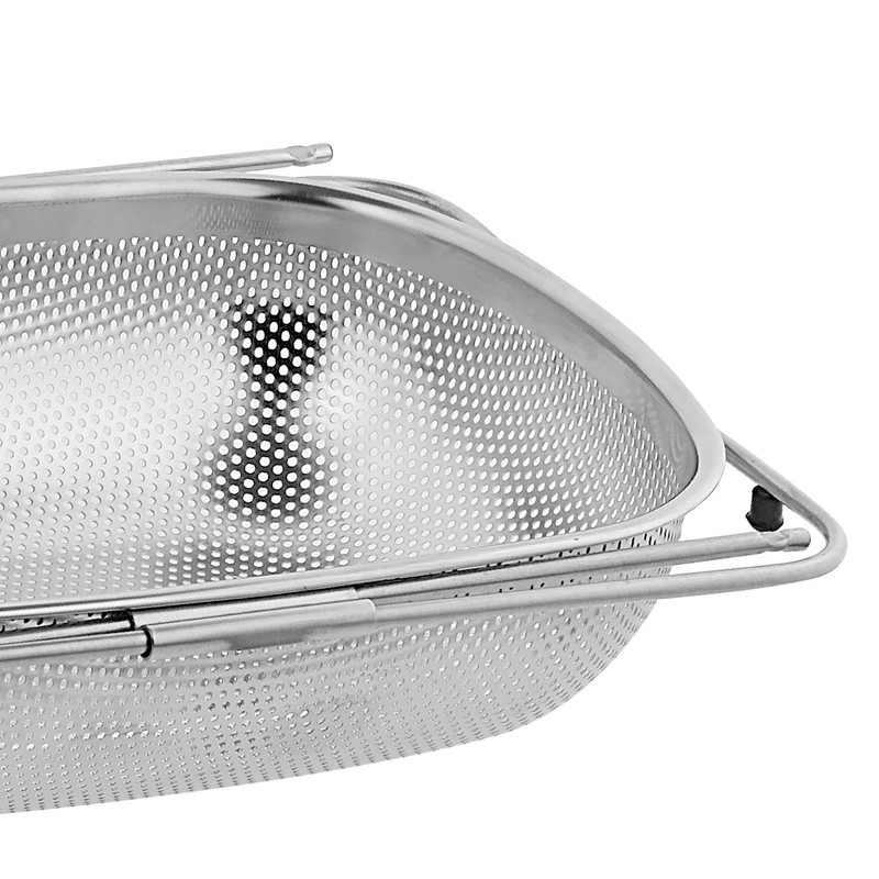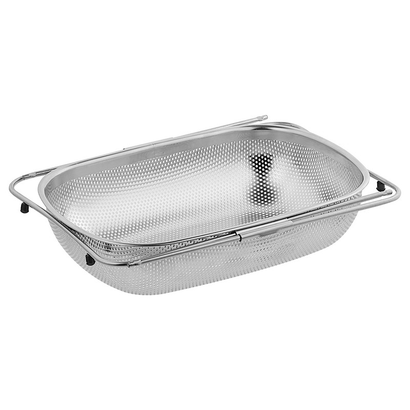آبکش سینک استیل کد 4080” از جنس استیل ضد زنگ و مقاوم است. این آبکش مناسب شستشوی میوه و سبزیجات، آبکشی برنج و … میباشد. این آبکش با طراحی خاصی که دارد، روی دو طرف سینک قرار می گیرد و دست های شما را آزاد خواهد گذاشت. بدنه این محصول از ورق استیل ضد زنگ شده و پایه ها از مفتول استیل و بسیار با دوام هستند.
