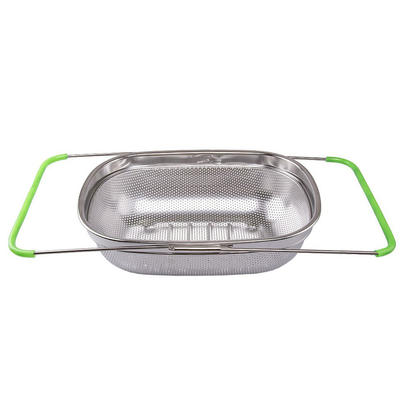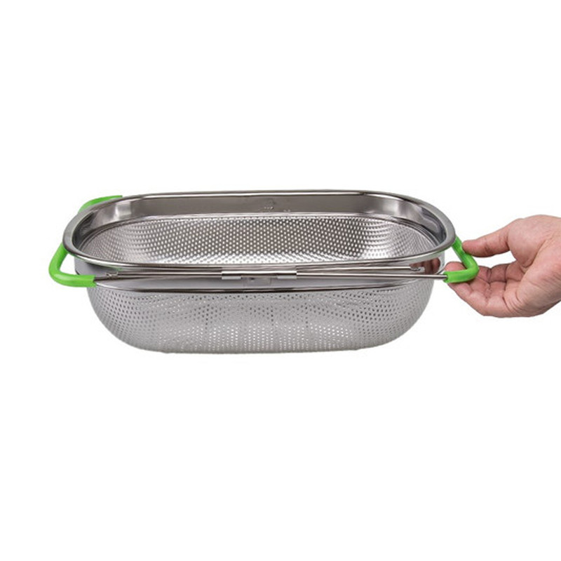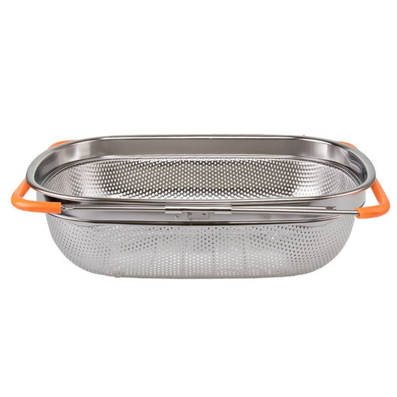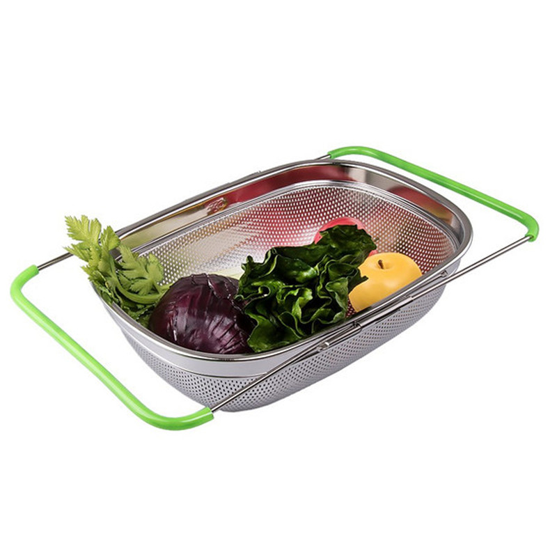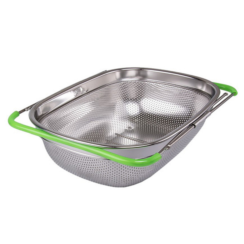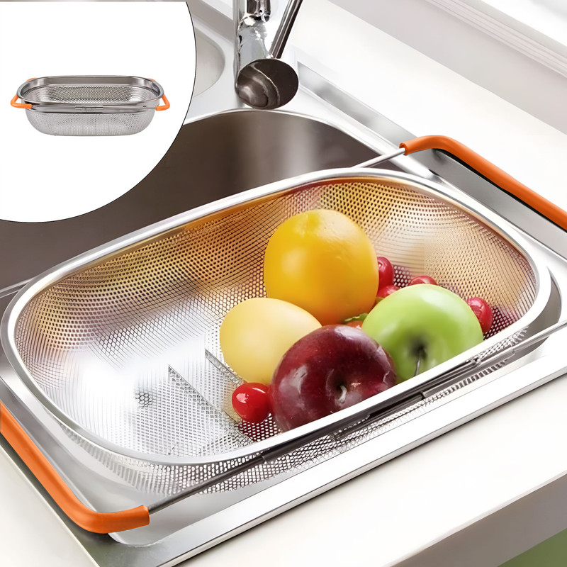 ابکش استیل ضد زنگ دارای دسته های کشویی متحرک که میتواند در سینک های ظرف شویی در سایز های مختلف قرار بگیرد .مناسب شستشوی میوه و سیزیجات وظروف. در دو رنگ می باشد