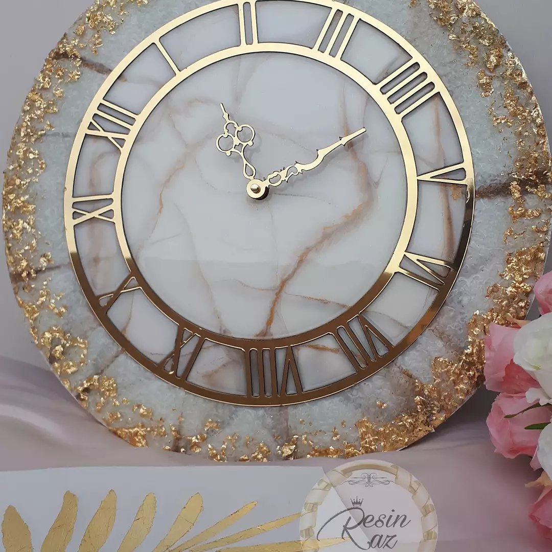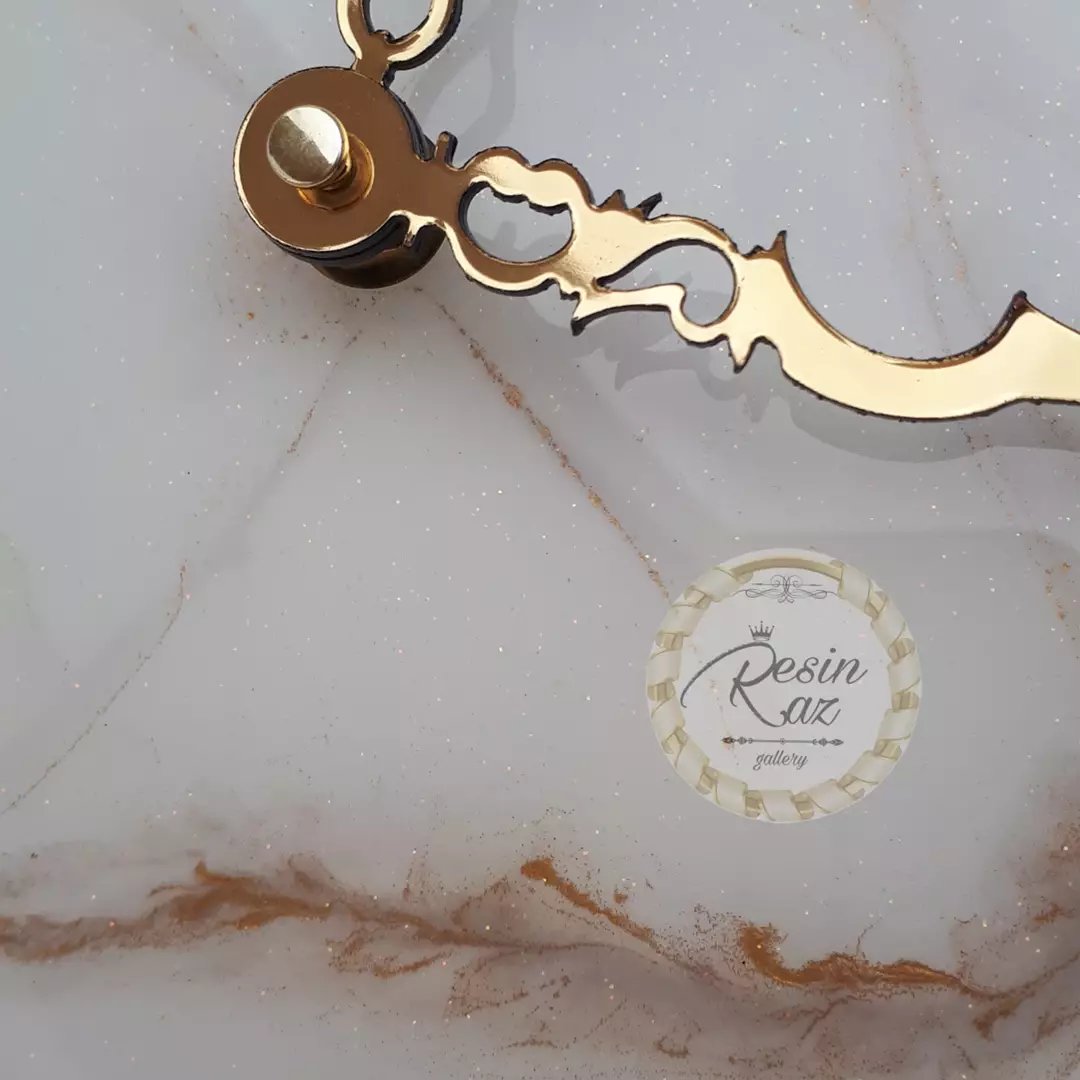 کار شده با ژئود و ورق طلا بیس کار mdf 16 mil اعداد پیوسته مولتی استایل موتور آرامگرد عقربه مولتی استایل بدون ثانیه شمار اکلیل دار و شاین