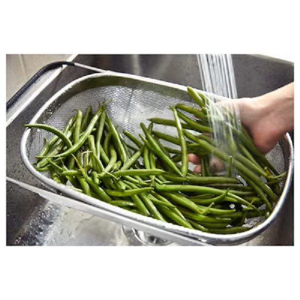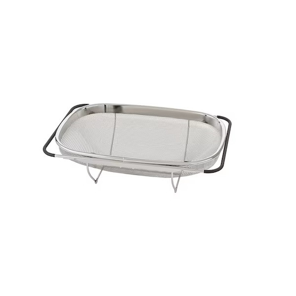 شستشوی سالاد یا تخلیه آب از ماکارونی, با این آبکش از جنس استنلس استیل ساده است که می توانید با استفاده از دسته های قابل تنظیم به راحتی روی سینک آویزان کنید.
