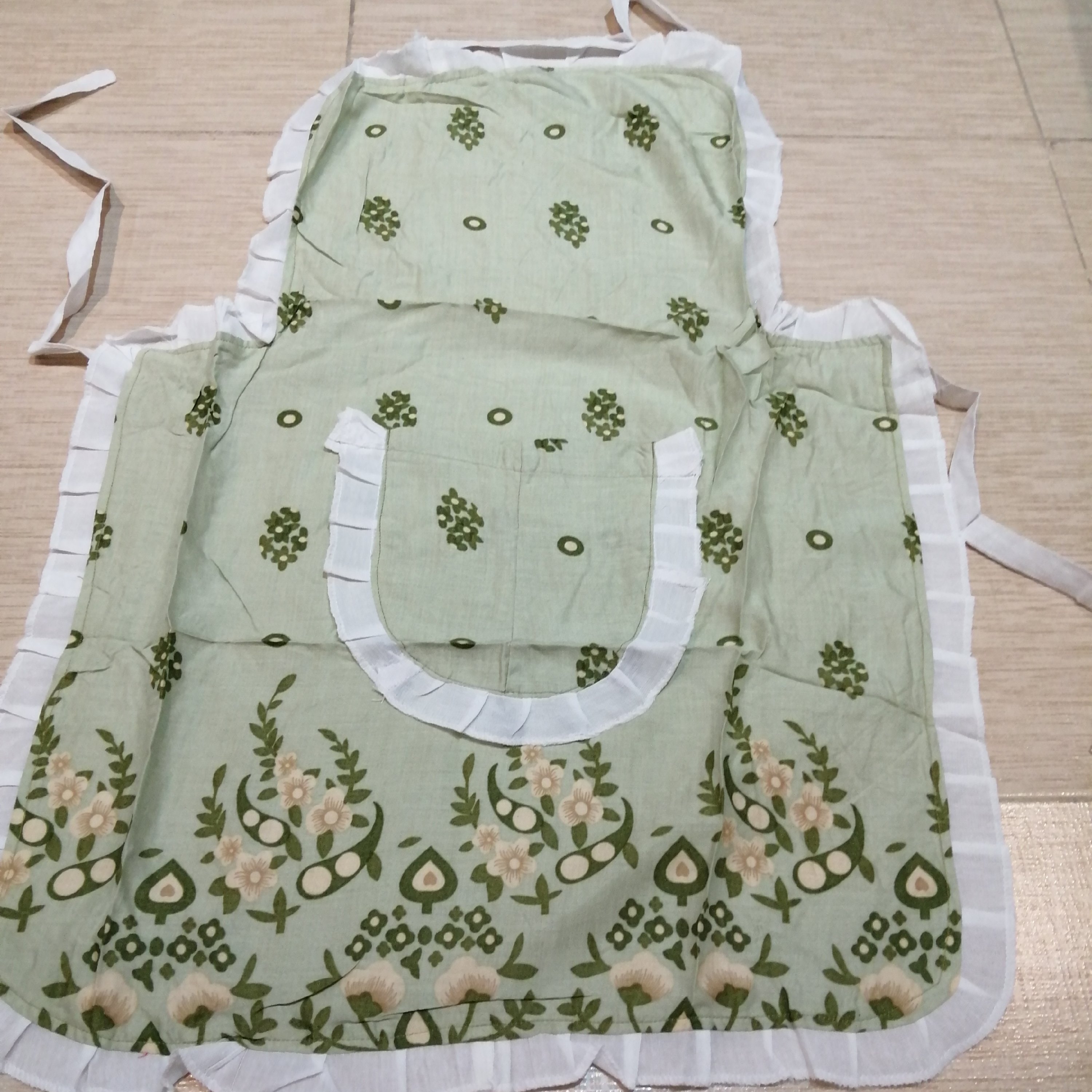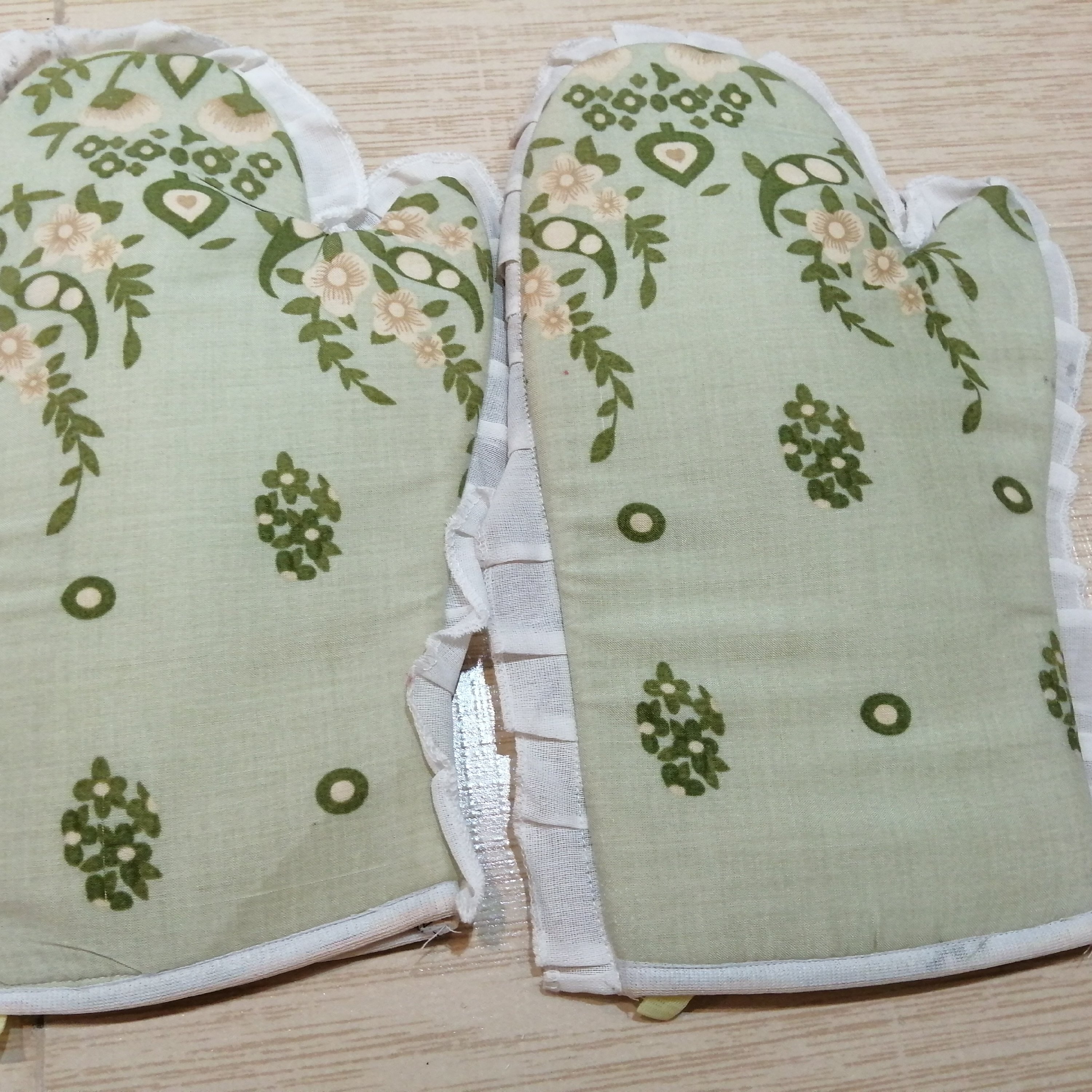 دمکنی 3 سایز، پیشبند جیب دار، دستکش فر، دستگیره قلبی یک جفت، جنس پارچه نخی دارای دارای ضخامت خیلی خوب با آستر سفید رنگ در پشت، پیشبند دارای لایه استر پلاستیکی می باشد