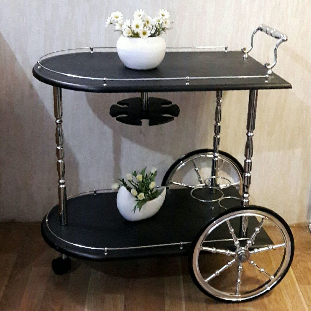 میز بار پذیرایی چرخدار مشکی بیضی ام دی اف مبلمونسرا مدل 219926