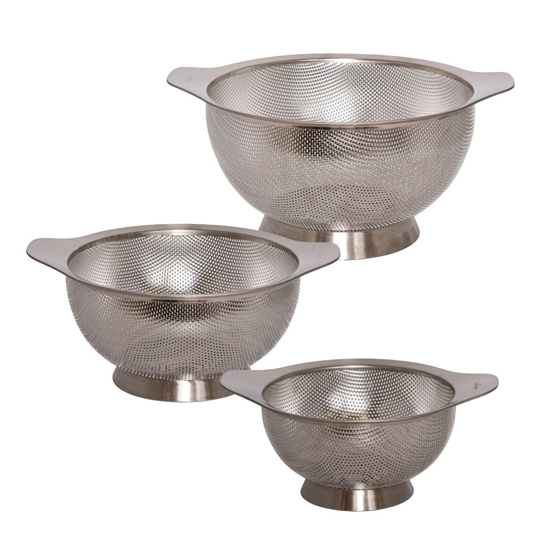 ست آبکش مجموعه 3 عددی از جنس استیل باکیفیت ساخته شده است که دارای حفره های برای خروج آب و همچنین قابل استفاده برای شستشو برنج، انواع حبوبات و سبزیجات و میوه جات می باشد . این محصول دارای پایه نیز می باشد . این محصول دارای 3عدد سبد آبکش با سایزهای 18(کوچک) ، سایز 22 (متوسط ) و سایز 26 (بزرگ ) می باشد .