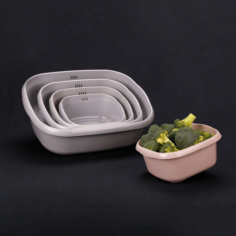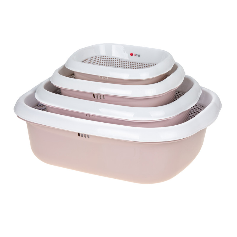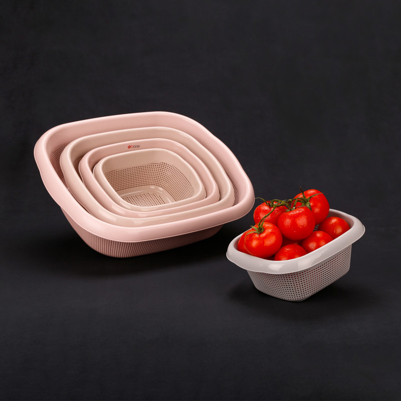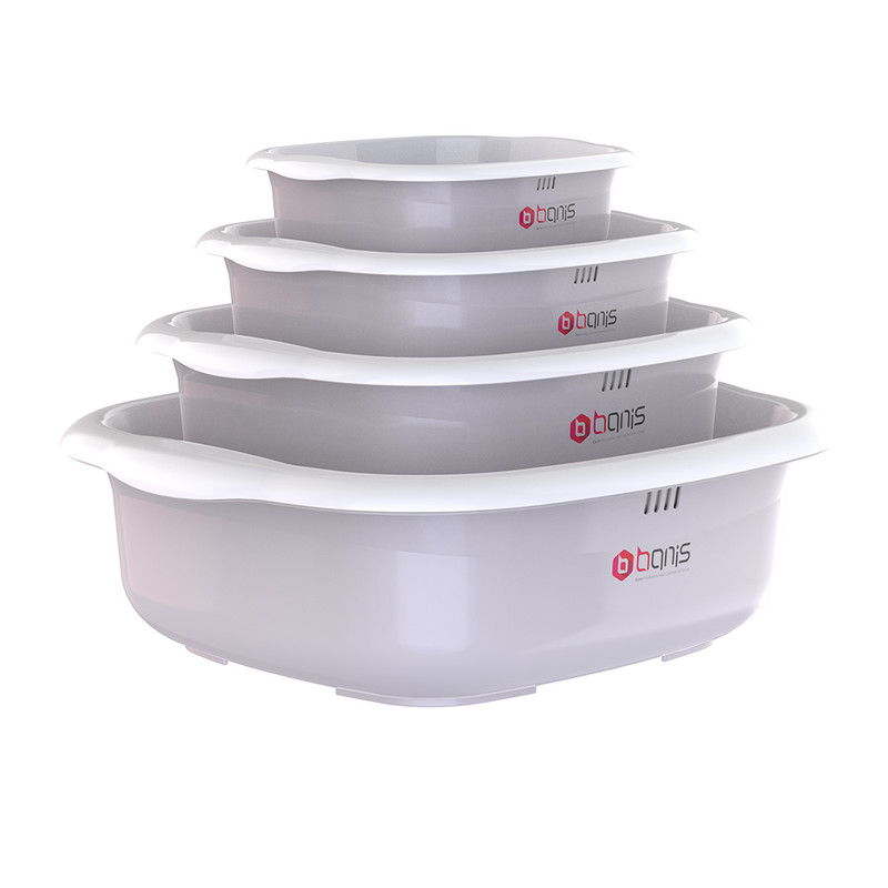 محصولات آبکش و لگن چهارگوش بانیس مدل الینا در 4 سایز طراحی و تولید شده اند که متناسب با ابعاد میتوانند کاربرد های گوناگونی داشته باشند. این محصولات دارای رنگ بندی متنوعی بوده و طیف وسیعی از سلایق را در بر میگیرد. همچنین به دلیل طراحی ساده و کاربردی آنها، قابلیت ست کردن با سایر لوازم آشپزخانه را فراهم می آورد. بر روی بدنه لگن نیز سوراخ هایی جهت خروج بهتر آب تعبیه شده است. این سایز از آبکش و لگن میتواند به عنوان سبد سینک نیز مورد استفاده قرار گیرد ابعاد و سایزبندی این محصول به شرح ذیل می باشد: سایز1: طول 23 عرض 19 ارتفاع 10 سایز 2: طول 28 عرض 24 ارتفاع 12 سایز 3: طول 34 عرض 30 ارتفاع 13.5 سایز 4: طول 43 عرض 38 ارتفاع 14