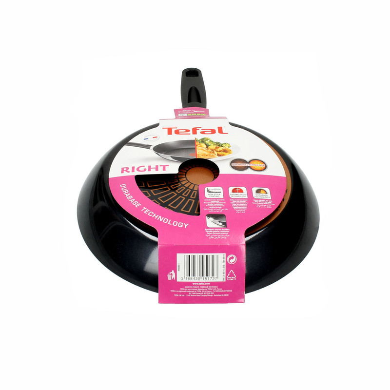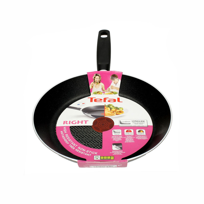 ماهیتابه Tefal Right با قطر 28 سانتی متر دارای رش نچسب مقاوم است که از چسبیدن غذا به کناره های تابه جلوگیری می کند. این مدل دارای نشانگر خاصی است که با آن می توانید به راحتی متوجه شوید که چه زمان تابه داغ است و آماده پخت غذای مورد نظر شماست. با توجه به ضخیم شدن قسمت پایین ، می توانید از این مدل در اجاق های گازسوز و برقی استفاده کنید. این ماهیتابه از آلومینیوم با کیفیت و با دوام ساخته شده است و همچنین با فولاد مخصوص پوشانده شده است ، که به لطف آن گرما به طور مساوی در کل سطح کار توزیع می شود و نیز به لطف رش مخصوص نچسب ، تمیز کردن ظرف بیش از چند دقیقه طول نمی کشد.