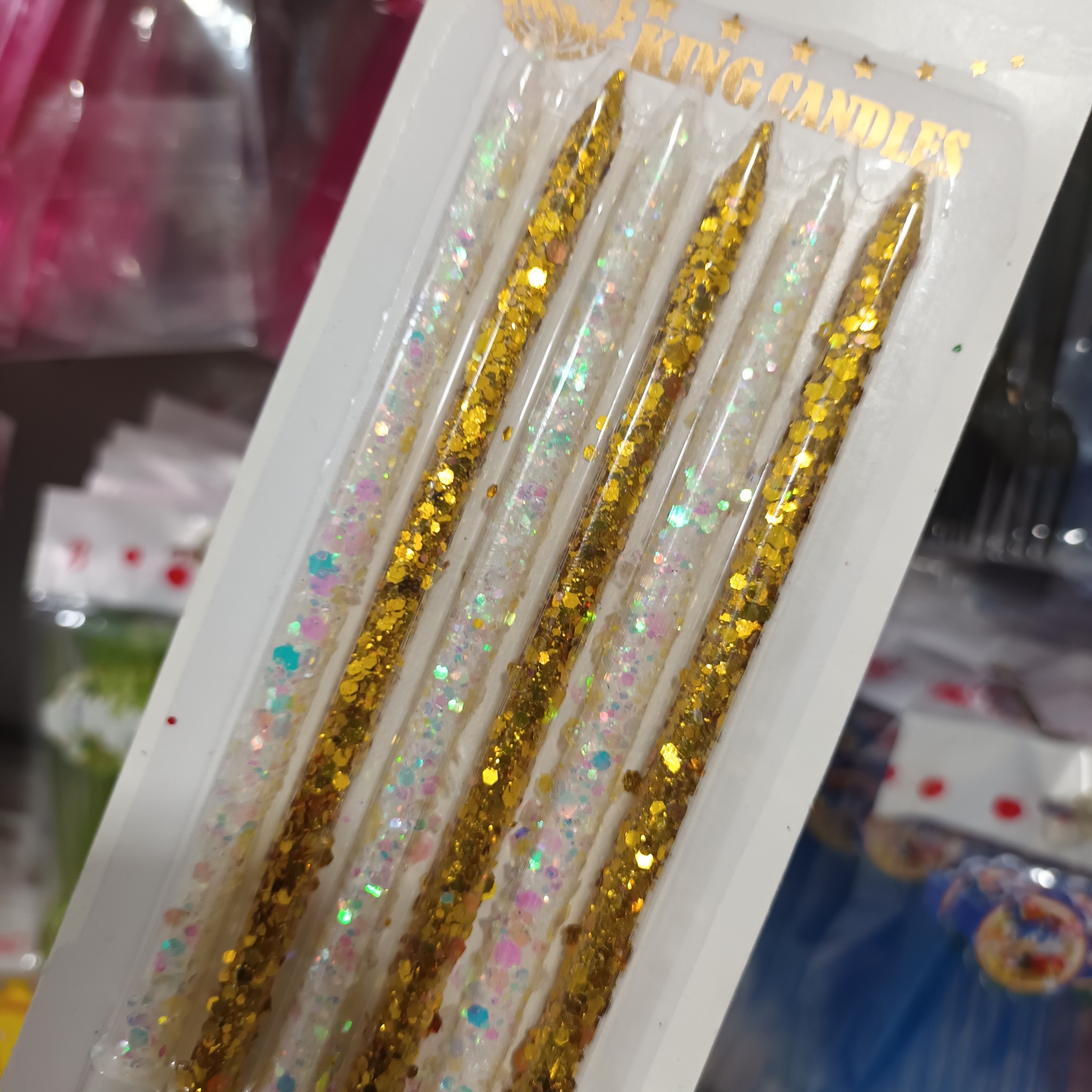 شمع اکلیلی پولکی طلایی و سفید ارتفاع 12 سانت بدون پایه بسته 6 تایی