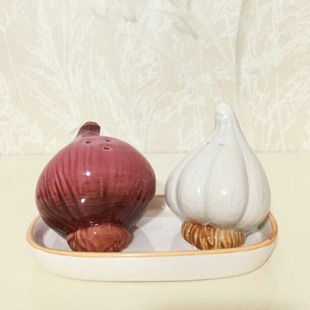 نمکدان و فلفل پاش سرامیکی طرح سیر و پیاز مبلمونسرا مدل 294658