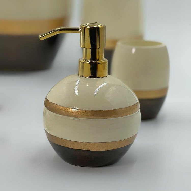 ست سرویس بهداشتی کوئین رنگ کرم و مشکی با لاین طلایی مبلمونسرا مدل 266559