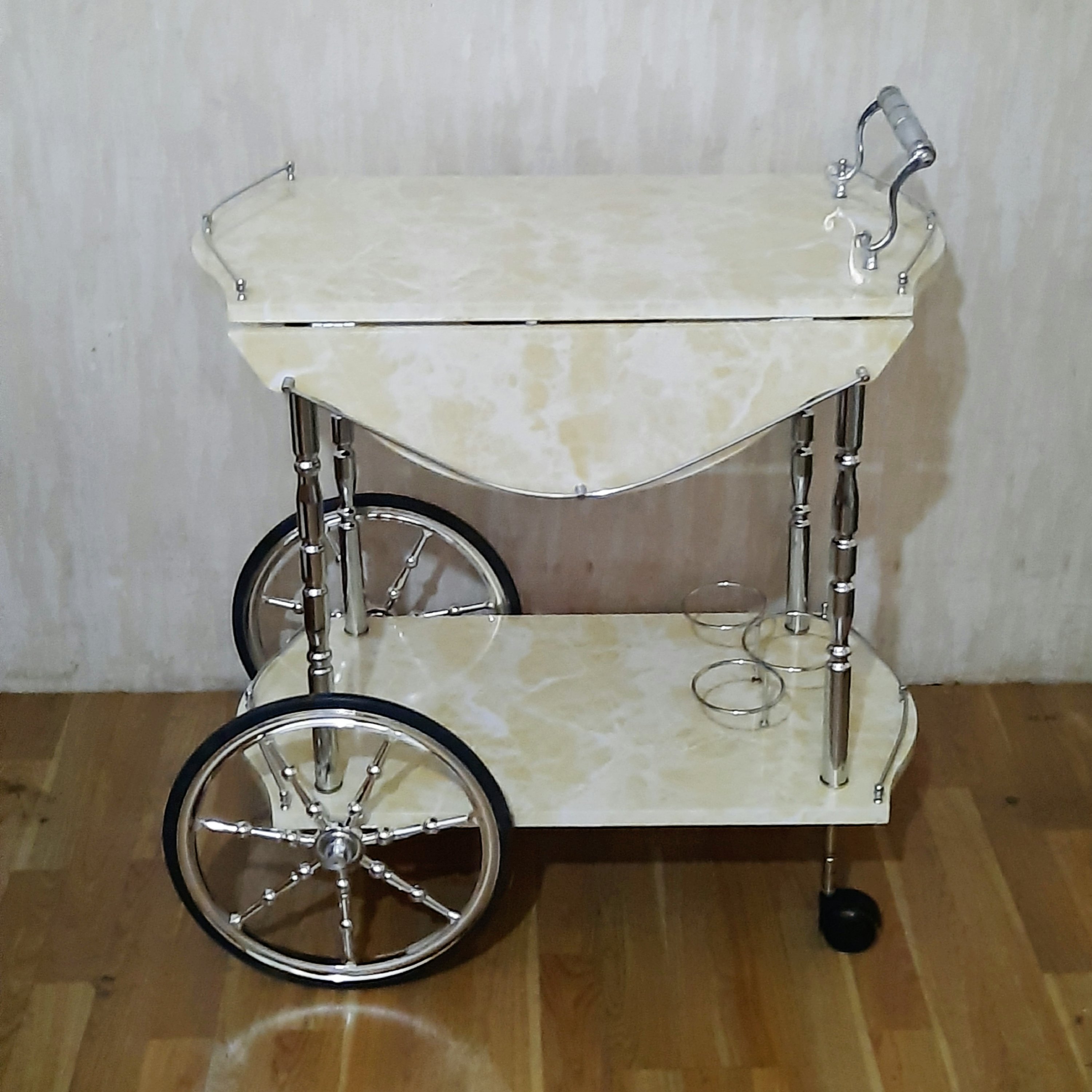 میز پذیرایی چرخدار معمولاً برای سرو نوشیدنیها، چای، قهوه، و همچنین پذیرایی از مهمانان در منزل یا مهمانیها استفاده میشود. کاربردهای اصلی: 1. **سرو نوشیدنیها و غذاها**: این میزها معمولاً برای حمل و سرو نوشیدنیها و غذاهای کوچک استفاده میشوند. این کار کمک میکند تا پذیرایی به شکلی مرتب و منظم انجام شود. 2. **دکوراسیون**: این میزها با طراحی زیبا و شیک خود میتوانند به عنوان یکی از اجزای دکوراسیونی منزل مورد استفاده قرار گیرند. قرار دادن گلها، ظروف تزئینی، و سایر اقلام دکوری روی این میزها میتواند زیبایی فضای داخلی را افزایش دهد. 3. **سهولت جابجایی**: به دلیل وجود چرخها، این میزها به راحتی قابل جابجایی هستند و میتوانند از یک اتاق به اتاق دیگر منتقل شوند. موارد استفاده: - در مهمانیها و دورهمیها برای پذیرایی از مهمانان. - در محیطهای داخلی مانند اتاق پذیرایی یا سالن نشیمن. - به عنوان میز کمکی در آشپزخانه یا سالن غذاخوری. - به عنوان جزئی از دکوراسیون خانه، همراه با قرار دادن اقلام تزئینی روی آن. این محصول کاربرد پذیرایی و دکوراتیو دارد تنوع رنگ و مدل و ارسال به تمام نقاط کشور