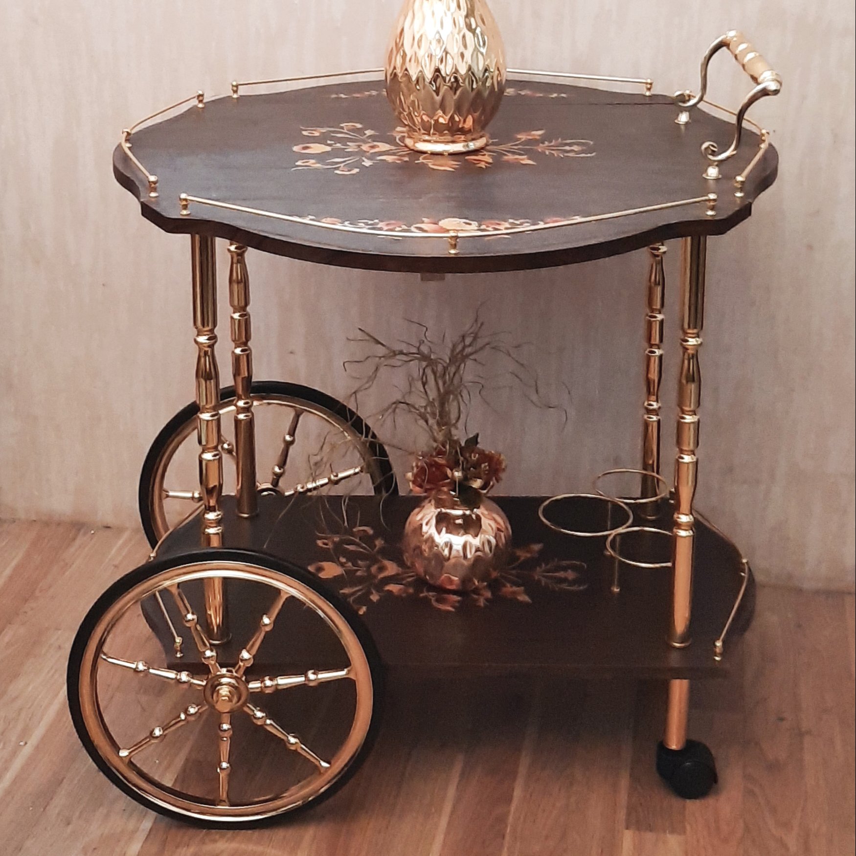 میز بار پذیرایی چرخدار پروانه ونگه طرحدار ام دی اف مبلمونسرا مدل 219927