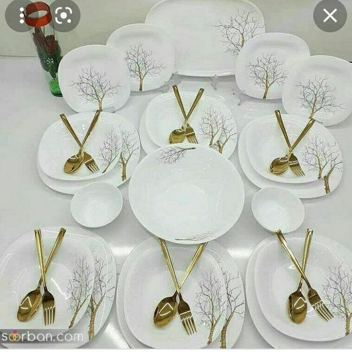 سرویس ارکوپال ۲۶پارچه طرح زیبا مربع مدل درخت طلایی دورساده ومدل پر شامل پلوخوری۶عدد،خورشت خوری ۶عدد،پیش دستی ۶عدد،دیس یک عدد،کاسه سالادیک عدد باارسال رایگان فقط به تهران سفارش برای شهرستان نداریم