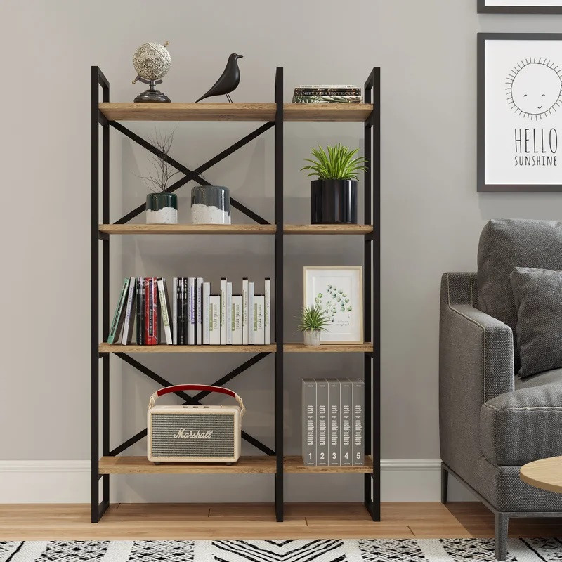 کتابخانه و طبقه دکوری ترکیبی از فلز رنگ مشکی مات و چوب کاج روسی رنگ شده است . این کتابخانه ظاهری مدرن دارد و جلوه ای خاص به دکوراسیون شما میدهد . توجه کنید به خاطر طبیعی بودن چوب ممکن است رنگ و بافت چوب کمی متفاوت باشد .