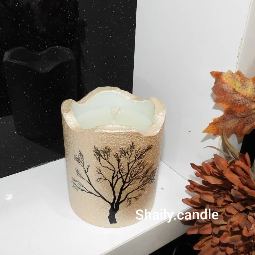 پک شامل شمع لبه شکسته به قطر ۸ و ارتفاع ۱۰ با رنگ متالیک بژ شمع روبیک سایز ۷*۷ شمع شات گزینه ای مناسب برای هدیه به عزیزانتون