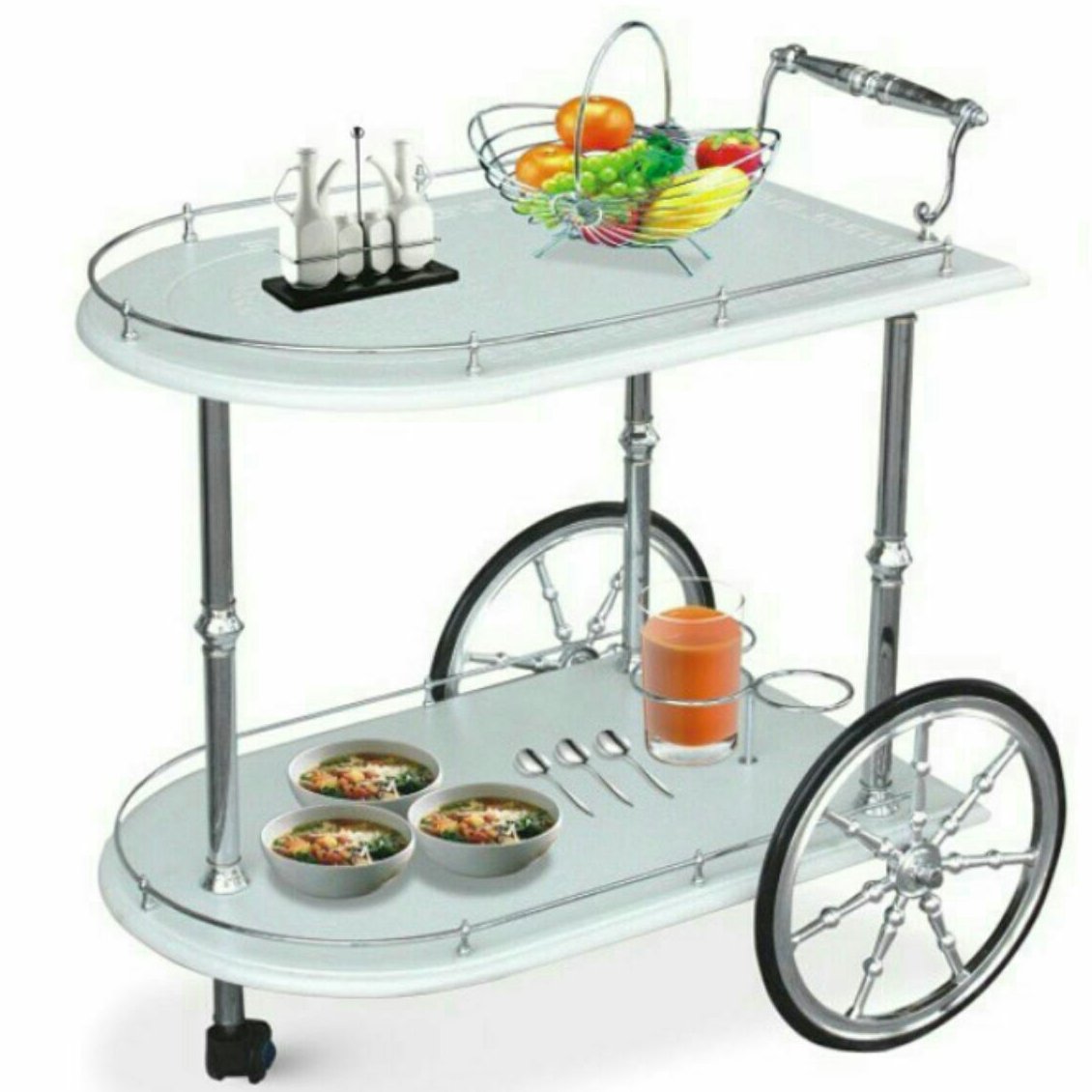 میز بار پذیرایی چرخدار سفید بیضی سیلور ام دی اف مبلمونسرا مدل 222713