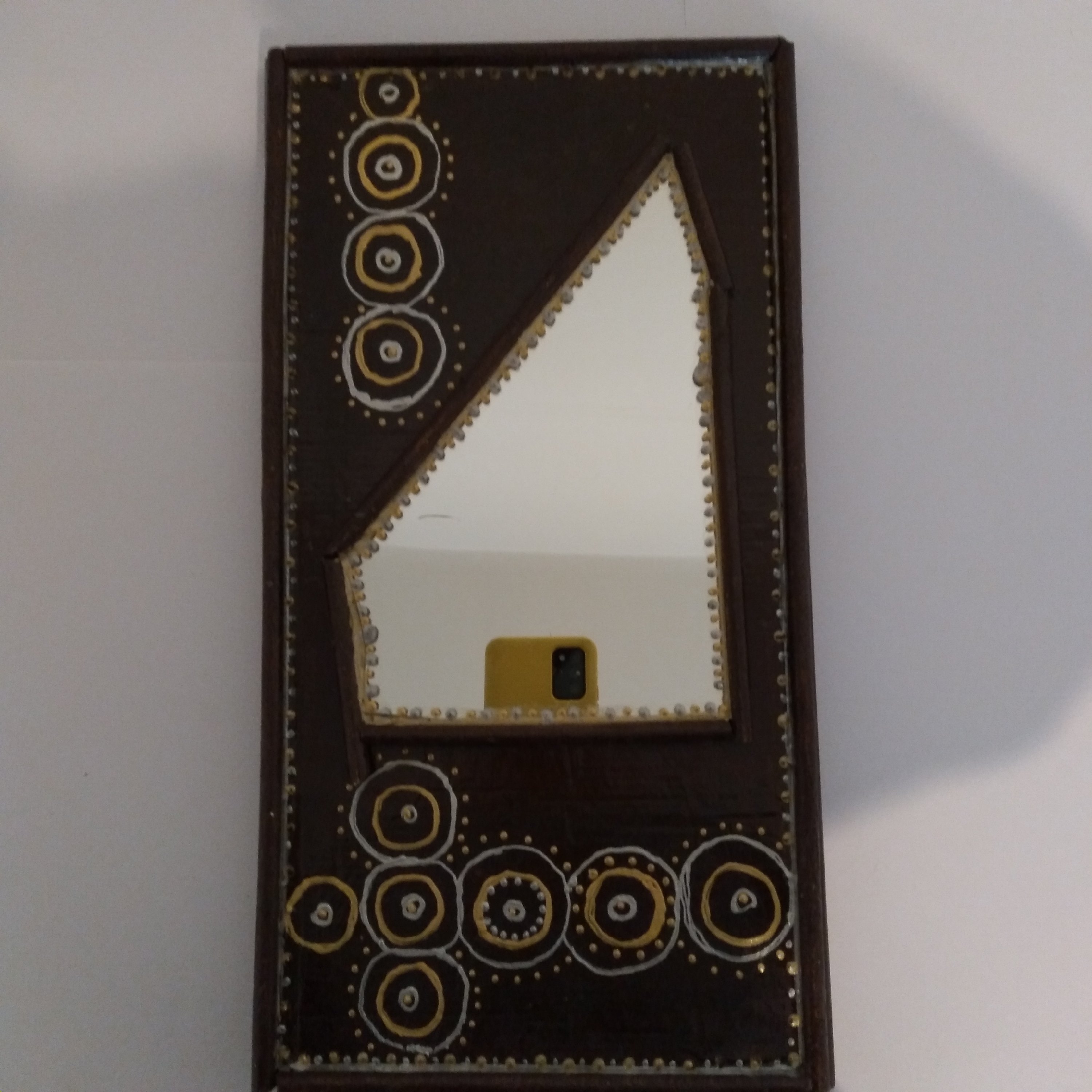 آیینه رومیزی مستطیل عمودی بزرگ که قابلیت نصب روی دیوار هم داره روغن جلا براق شده مناسب هفت سین هم خاص و کژوال تک و منحصربفرد تکرارنداره نقاشی روی چوب با طلایی و نقره ای تمیزی با دستمال خشک