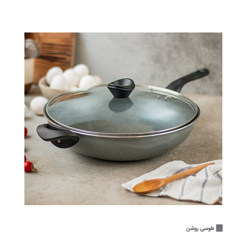امروزه استفاده از تابه هایی که امکان پخت غذاهایی با روغن کم و یا بدون روغن را دارند به دلیل لایف استایل سالم و بدون ضرر بسیار پر کاربرد شده است. تابه تکنو سایز 32 محصولی قدیمی و پرکاربرد از برند تکنو می باشد که با پوشش داخلی گرانیت نچسب نانو به راحتی امکان پخت و سرخ کردن مواد غذایی به خصوص غذاهای آسیای شرقی که معمولا به صورت بخار پز و یا با آب خود غذا طبخ می شود را می دهد. تابه از تابههای کاربردی در آشپزخانههای آسیای شرقی است که غذاهایشان را با سرعت و شعلهی زیاد میپزند و اجازه میدهند موادغذایی با آب داخل خودشان و برای مدت کمی سرخ یا نرم شوند. این روش میزان زیادی از خواص موادغذایی را حفظ میکند و یکی از بهترین روشهای پخت است. تابه تکنو با ضخامت مناسب 3 میلیمتر باعث پخت یکنواخت غذامی شود. این تابه با دسته ای از جنس باکالیت نسوز و همچنین درب شیشه ای با قاب استیل یک محصول چندمنظوره برای آشپزخانه شماست.