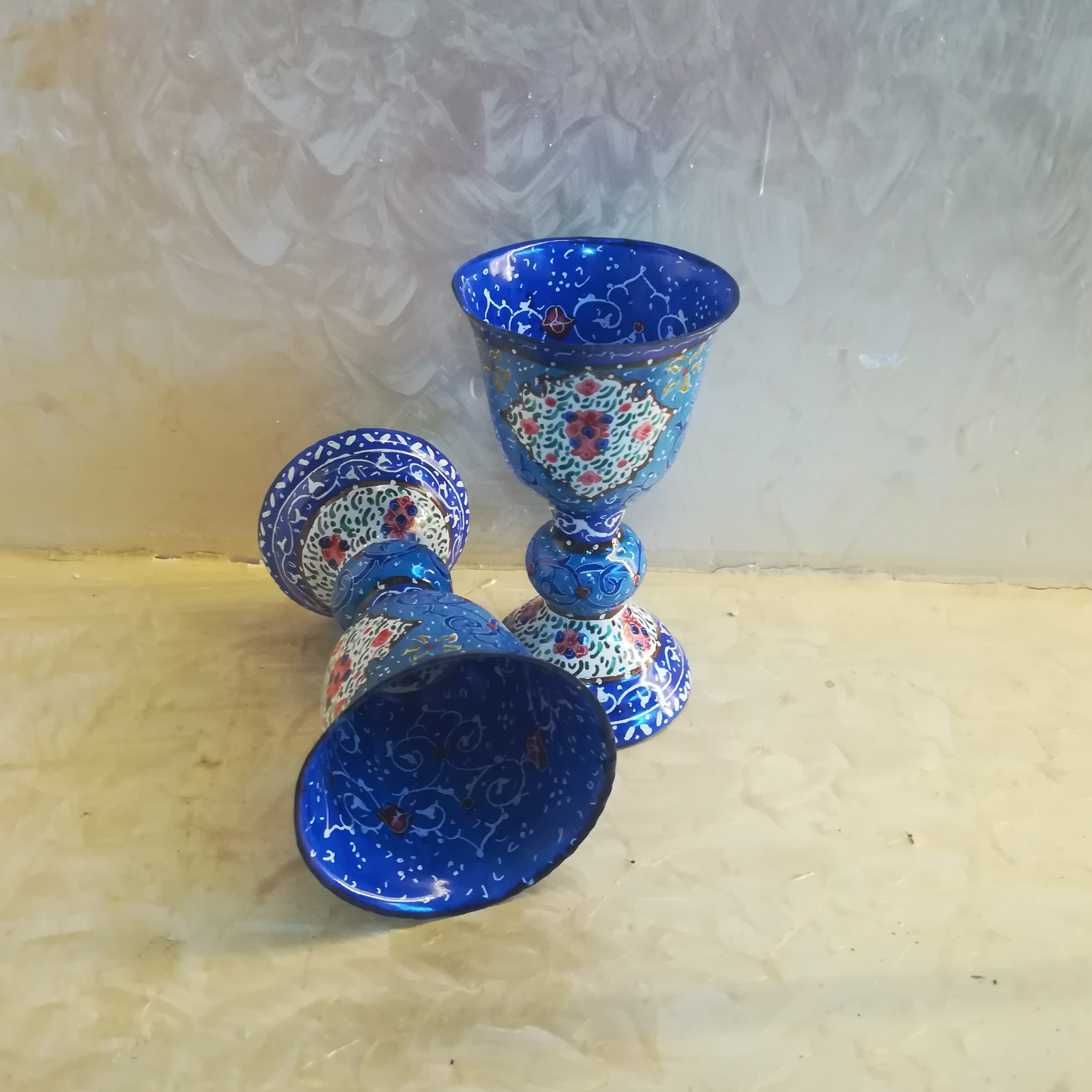 دوعددجاشمعی پایه دار مینا کاری شده به ارتفاع۱۰سانت به عنوان جاتخم مرغی هم میتوان استفاده کرد.