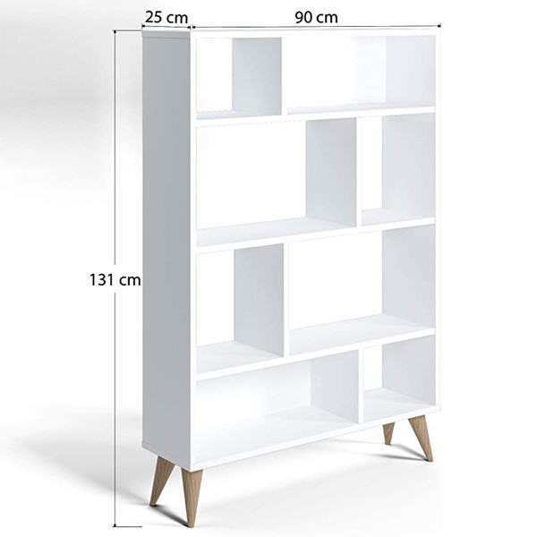 کتابخانه IKE123 دارای چهار طبقه و 8 باکس می باشد.دارای طراحی هارمونیک و زیبا می باشد.و دارای چهار عدد پایه طرح چوب پلاستیکی و همچنین استحکام این کتابخانه جهت کالاهای دکوراتیو و کتاب مناسب است.این محصول در سه نگ سفید ، قهوه ای روشن و قهوه ای تیره میباشد