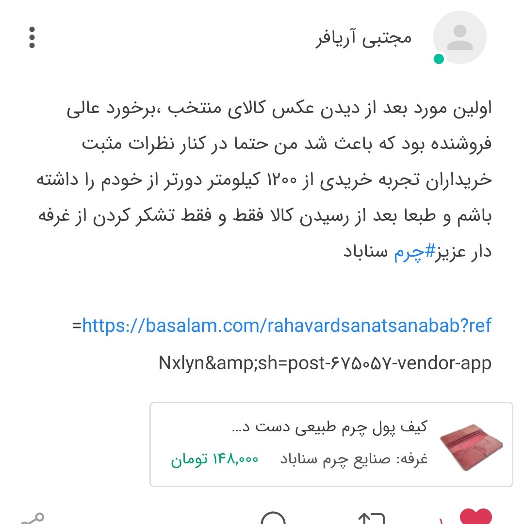 «اول امر لازم است به عرض برسانم که کلیه محصولات صنایع چرم سناباد از چرم بز و گاو طبیعی و با کیفیت میباشد و لازم میدانم