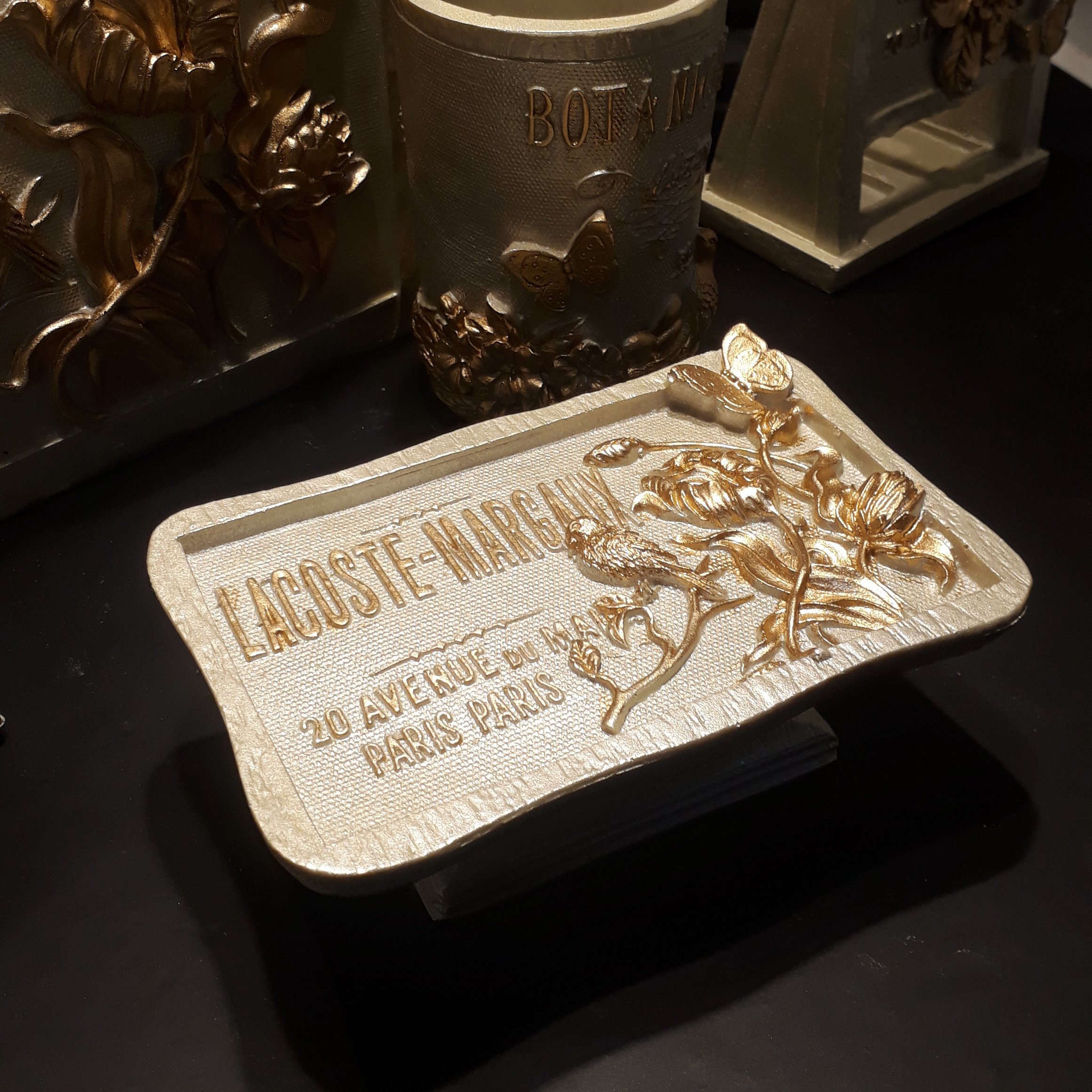 اکسسوری و ست سرویس بهداشتی مدل پاریس آذین ست - رنگ کرم صدفی با طلایی - جنس رزین درجه یک مبلمونسرا مدل 265786