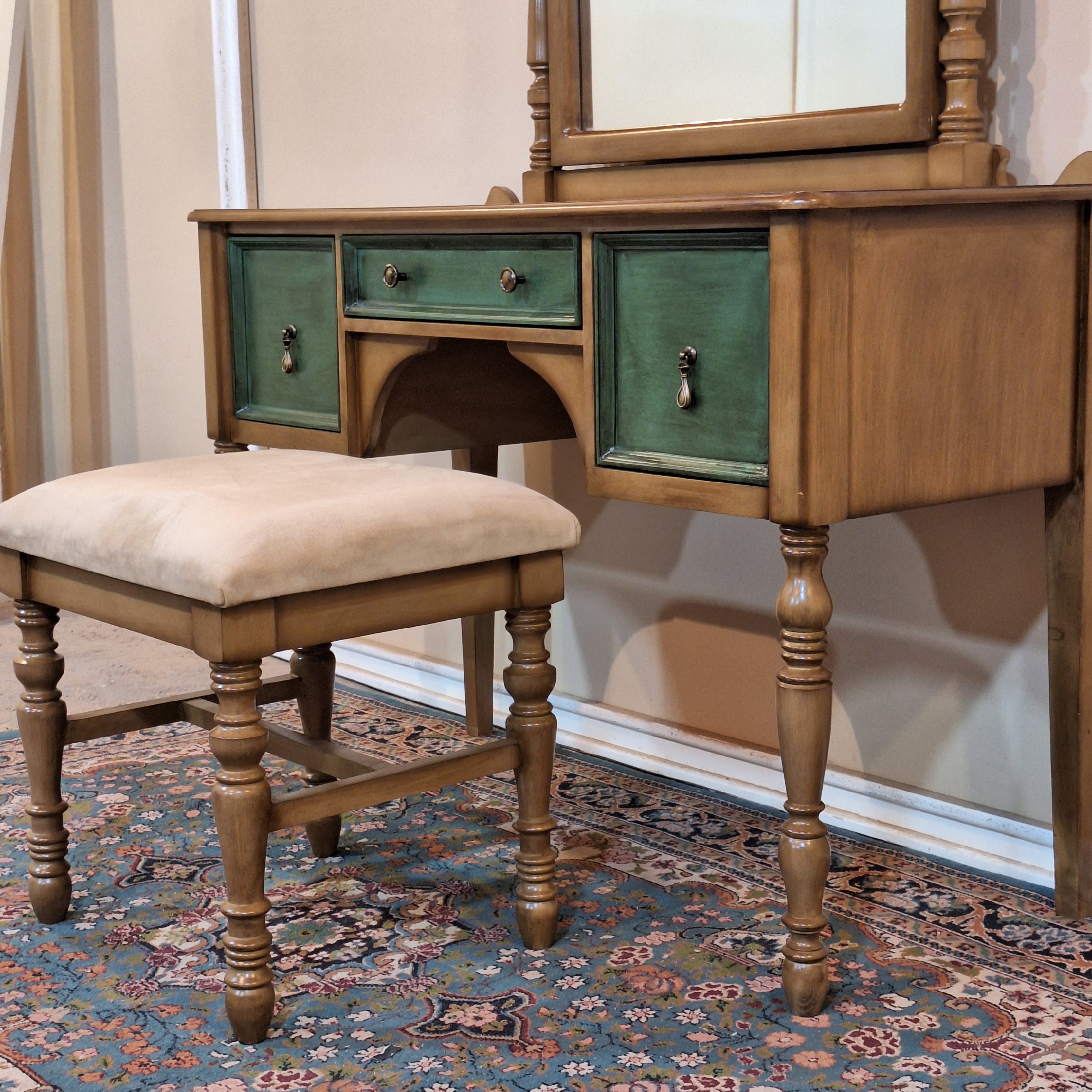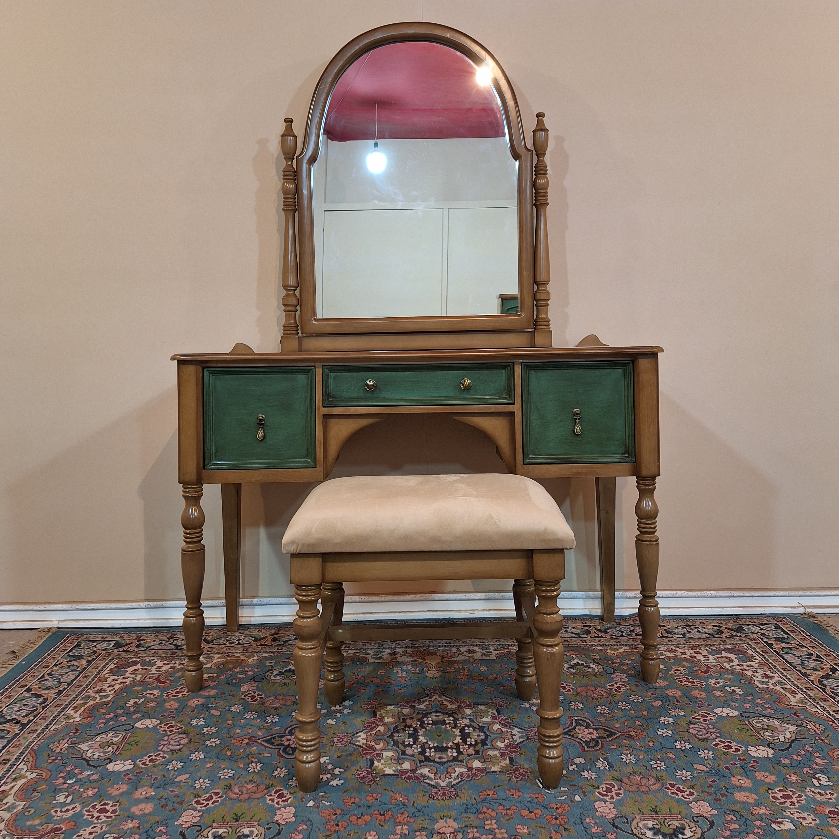 میزآرایش جدید به سبک کلاسیک به همراه صندلی چهارپایه و آینه با ستون های خراطی مناسب کسایی که میزآرایش خاص میپسندن صفحه میزآرایش بزرگ و جادار هست و تعداد کشوهای مناسبی داره جنس: ترکیب چوب و ام دی اف خامِ که رنگ پوششی و پلی استر درجه یکم روش کار شده. ابعاد 120/50 و ارتفاع 80 ارسال به سراسر کشور داریم هزینه ارسال به عهده مشتری و به صورت میباشد.