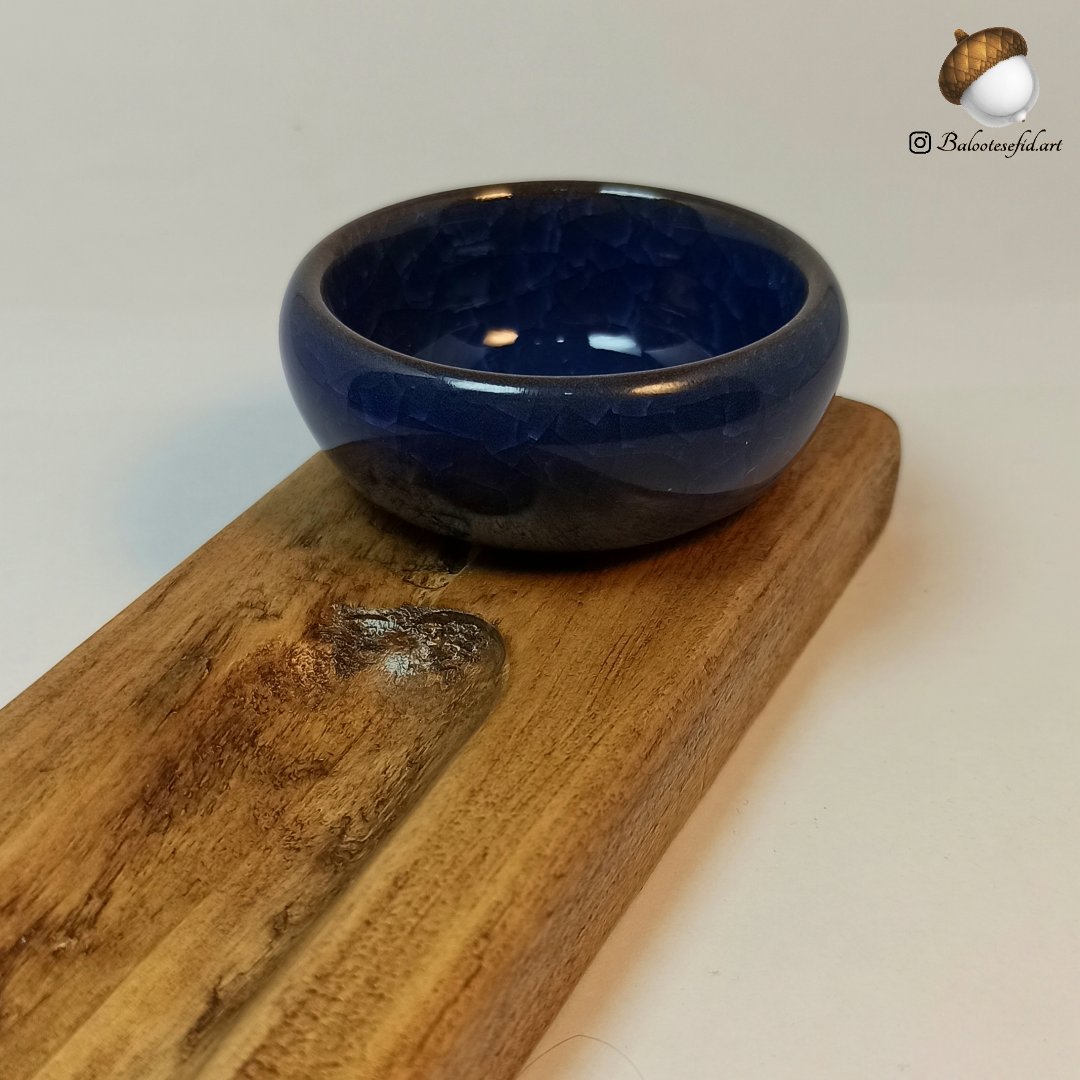 جاعودی چوبی کاسه دار مدل نیلوفر ترکیب زیبای چوب و سفال انتخاب رنگ کاسه با مشتری عزیز رنگ چوب به سفارش شما عزیزان چوب نراد تماما دستساز