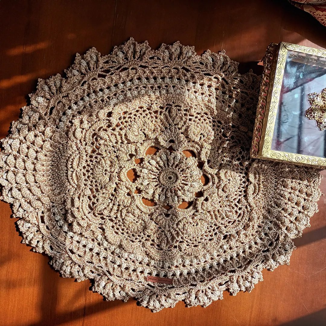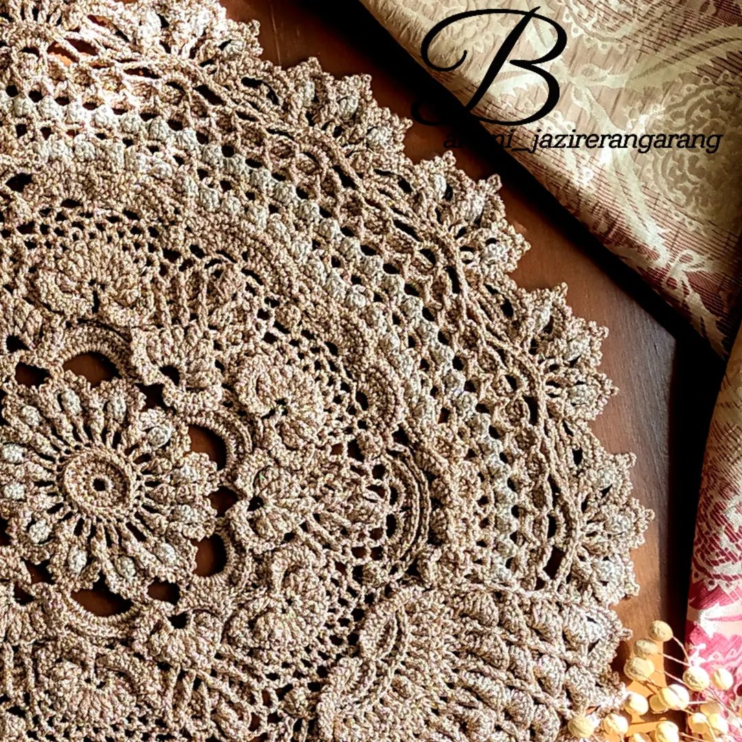 رومیزی طر ماندالا رومانتیک ،رنگ لمه طلایی استخوانی و استخوانی ساده ، سایز 55×65 مبلمونسرا مدل 259676