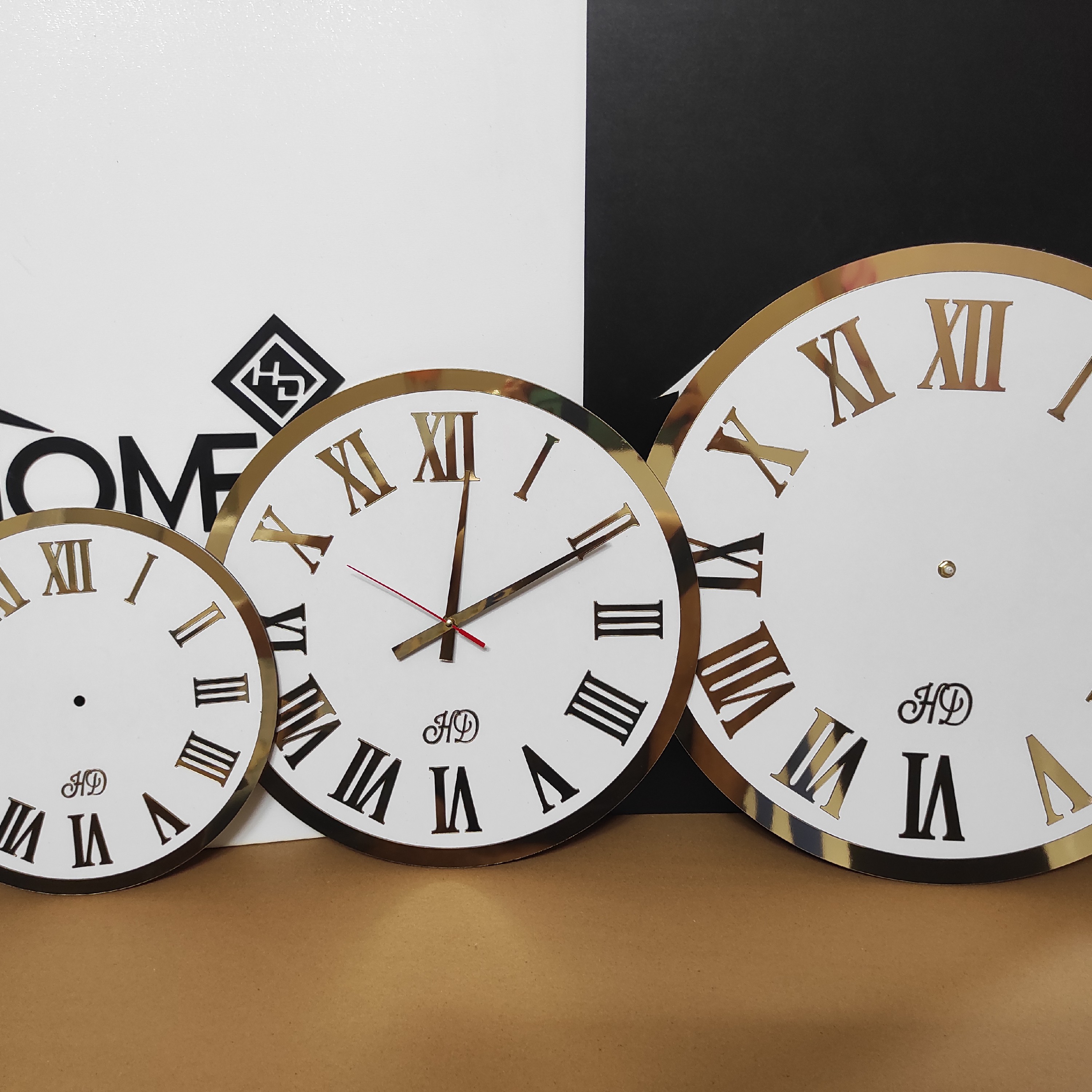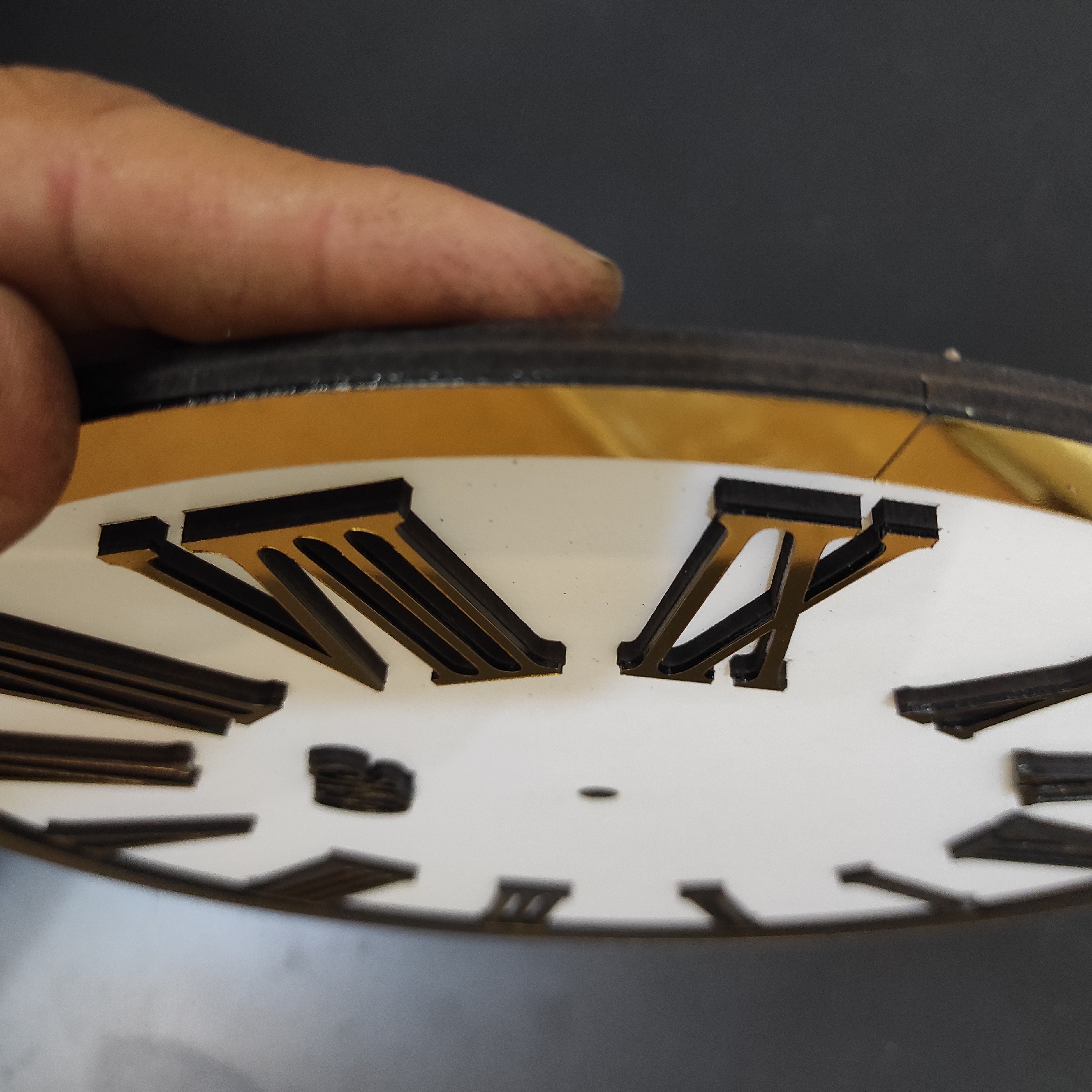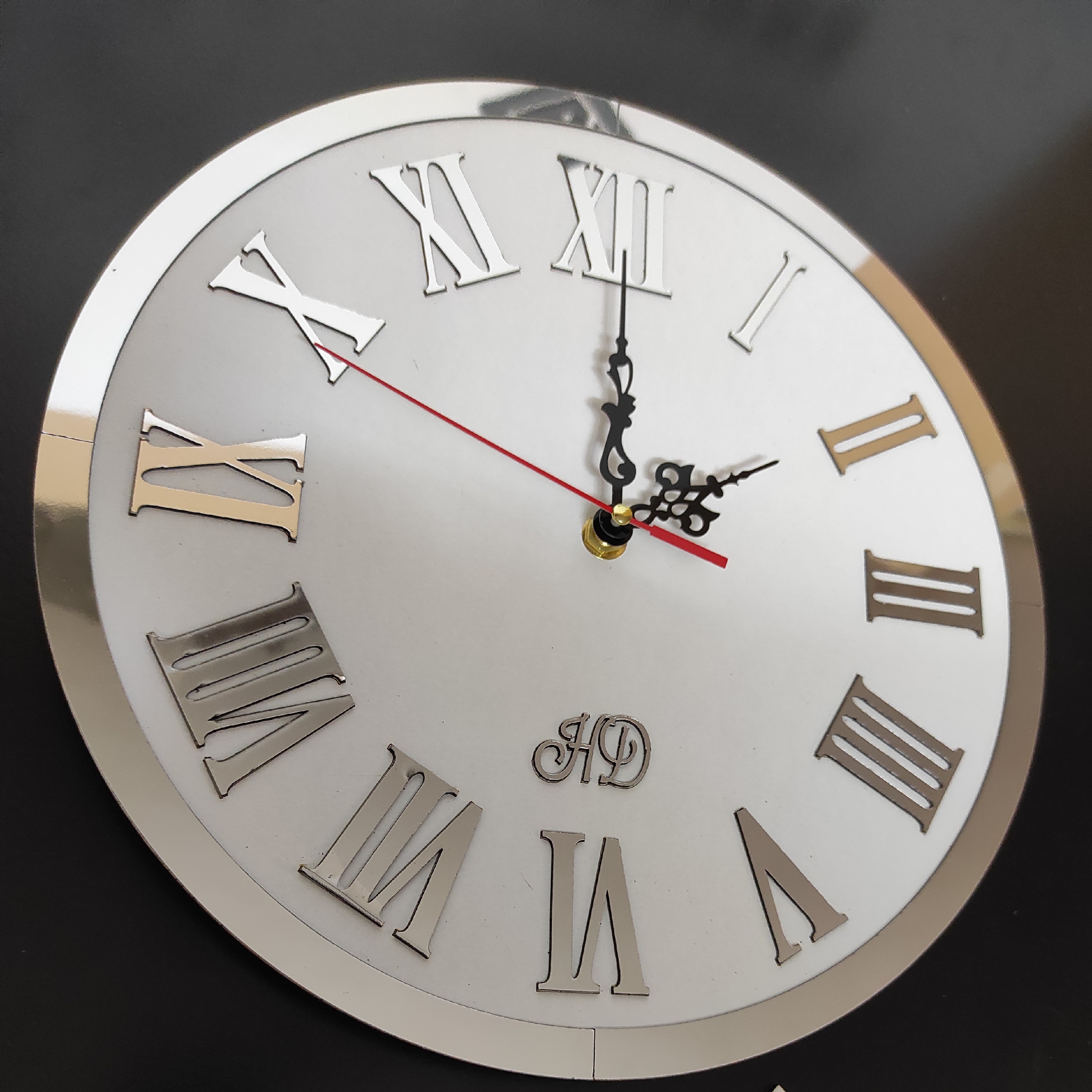 روی این ساعت شیشه ندارد این ساعت شامل یک لایه ام دی اف 3 میل و یک لایه هم پلکسی مولتی استایل که بصورت دایره و عدد روی آن قرار دارند. موتور آرامگرد بیصدا است در دو رنگ طلایی و نقره ای. برای تعیین رنگ پس از ثبت سفارش در گفتگو ما را مطلع سازید