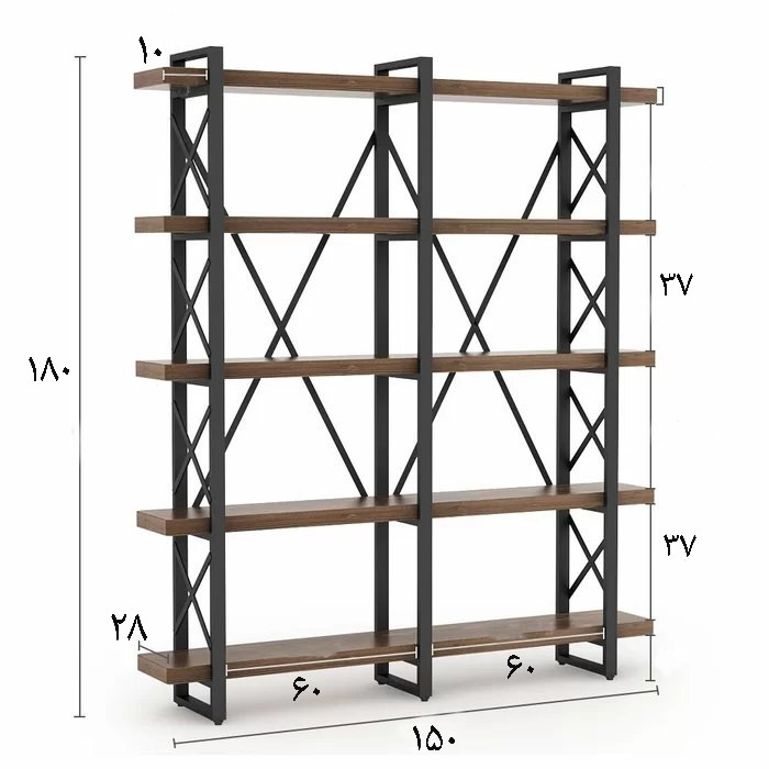 کتابخانه مدل MD98 انتخاب ایده آل برای دوستداران دکوراسیون سبک مدرن می باشد و مناسب برای چیدمان لوازم دکوری و کتاب می باشد ، برای طبقات محصول از چوب کاج وارداتی (نراد روسی) استفاده شده که در کوره کاملا خشک شده است و این فرایند چوب را در مقابل پدید آمدن ترک های ریز و درشت و تاب برداشتن در دراز مدت مقاوم میکند ، برای طبقات از چوب با قطر بالا (۳۲میلیمتر) استفاده شده است. برای ساخت فریم محصول از پروفیل صنعتی 40×20 mm که سطحی هموار و صیقلی دارد استفاده شده و با روش جوشکاری میگ (co2) ساخته و سپس پرداخت کامل شده بطوریکه هیچگونه اثر و زائده جوش مشخص نیست و در نهایت با رنگ مشکی مات کوره ای الکترواستاتیک که مقاومت بالایی دارد پوشش داده شده است. ابعاد محصول بدین شرح است: ارتفاع ۱۸۰cm طول طبقات ۱۵۰cm عرض ۳۲cm عمق طبقات ۲۸cm فاصله بین طبقات ۳۷cm و قطر چوب ۳۲mm و تعداد طبقات ۵ عدد برای ایمنی بیشتر و جلوگیری از سقوط محل پیچ شدن به دیوار تعبیه شده است و براحتی توسط یک نفر قابلیت مونتاژ دارد.
