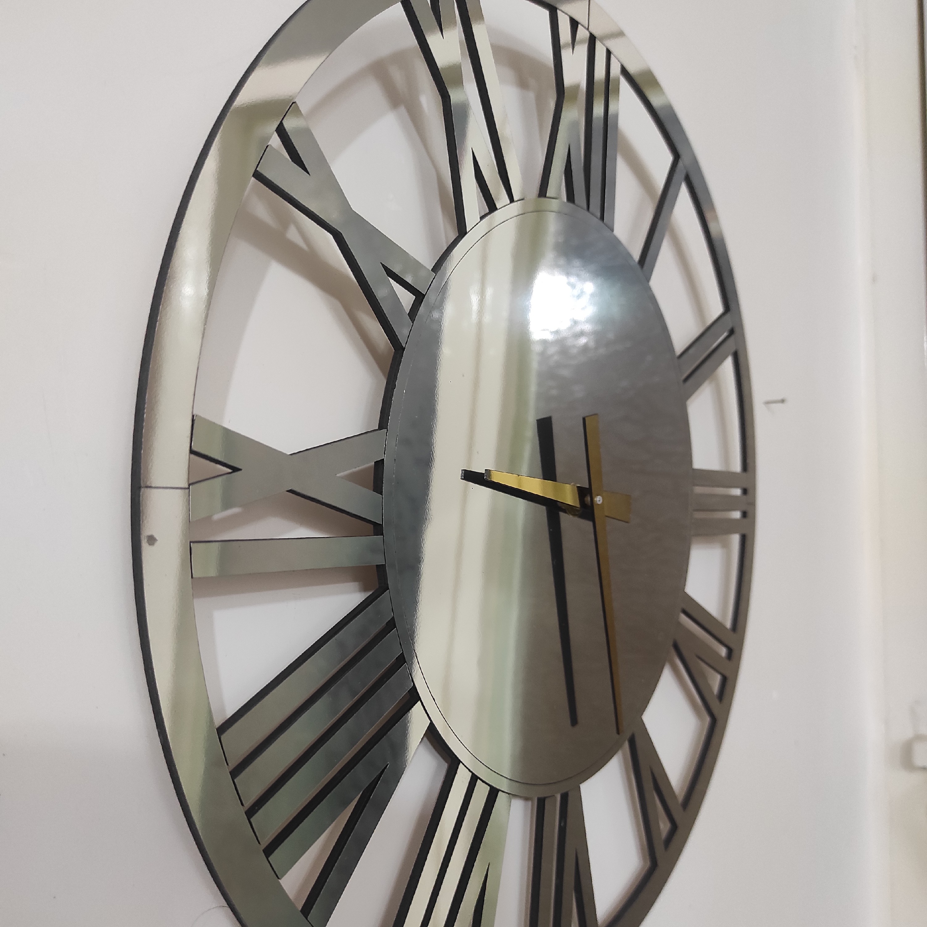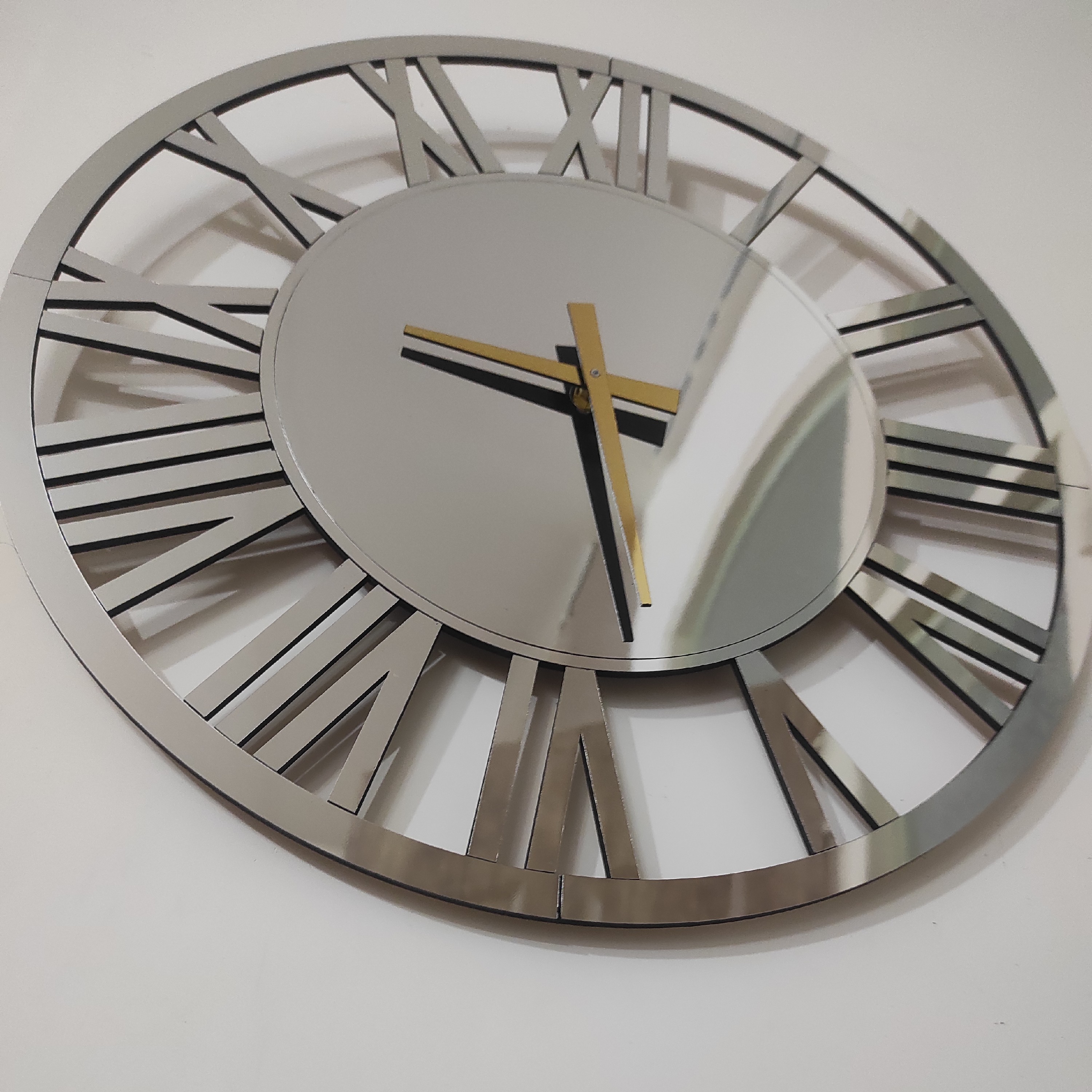 این ساعت شامل یک لایه ام دی اف 3 میل و یک لایه هم پلکسی مولتی استایل که بصورت تکه تکه روی آن قرار دارند. موتور آرامگرد بیصدا است در دو رنگ طلایی و نقره ای. برای تعیین رنگ پس از ثبت سفارش در گفتگو ما را مطلع سازید