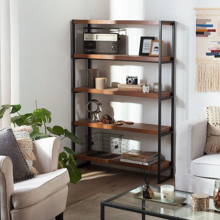 سادگی و استفاده از امکانات متنوع از ویژگی های کلان این استند است. میتوان آن را در اتاق مطالعه ، نشیمن یا آشپزخانه خود گذاشته . قفسه های ضخیم از پایداری و ظرفیت وزن قابل توجهی اطمینان می دهد. قاب سیاه و رنگ ظریف چوب تیره یک ظرافت زیبا را ایجاد می کند.
