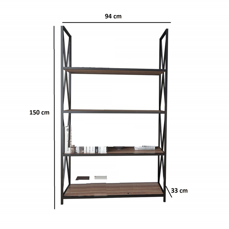 قفسه کتاب 4 طبقه فلزی با فرمت x ترکیبی عالی از رنگ فلز سیاه و گردو است. قاب X بصری پیشرفته ای را به شما اضافه می کند ، در عین حال ، شما یک محیط زیبا همراه با لمس صنعتی را احساس خواهید کرد. قفسه های باز محفظه ذخیره سازی را فراهم می کنند و هر قفسه ذخیره کتاب ، مجله و سایر لوازم تزئینی را فراهم می کند. این قفسه کتاب از تخته خرده چوب های چند لایه ساخته شده با ضخامت 16 میلی متر ساخته شده و با نوار باند لبه پی وی سی کلاس اول لمینیت شده است. به طور کلی ، این ماده با استفاده از مواد معتبر ESE و سازگار با محیط زیست و بهداشتی ساخته شده است. بسته موجود است. ساختار جامد با دوام به شما امکان استفاده طولانی مدت از این قفسه کتاب را می دهد.